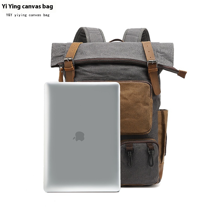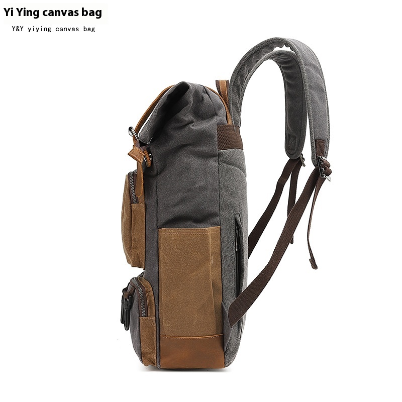 Canvas Backpack For Men,College Student Backpack,Outdoor Travel Computer Bag,Waxed Canvas With Crazy Horse Leather,Water-repellent