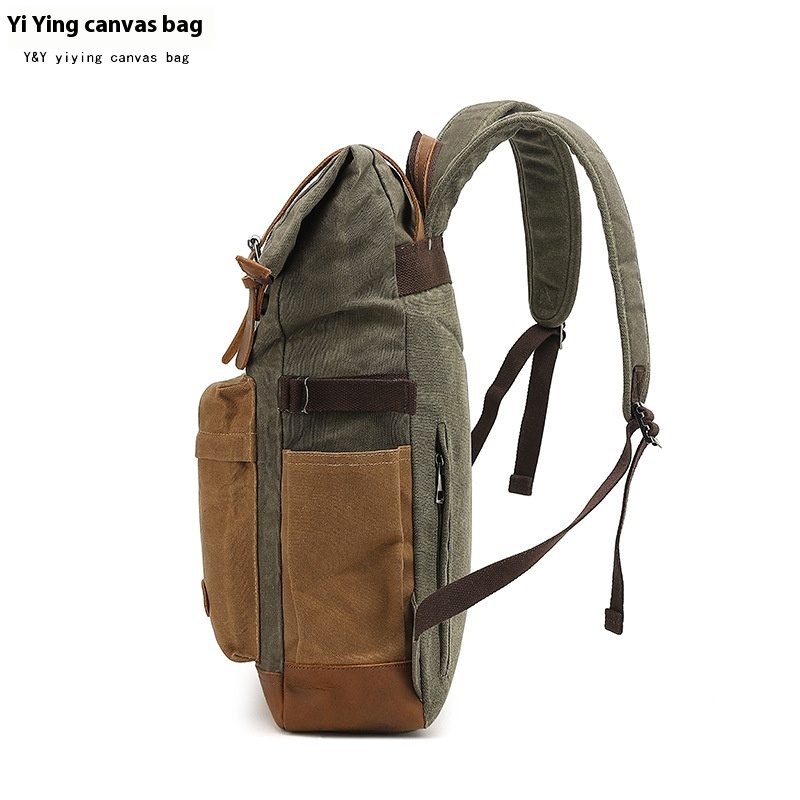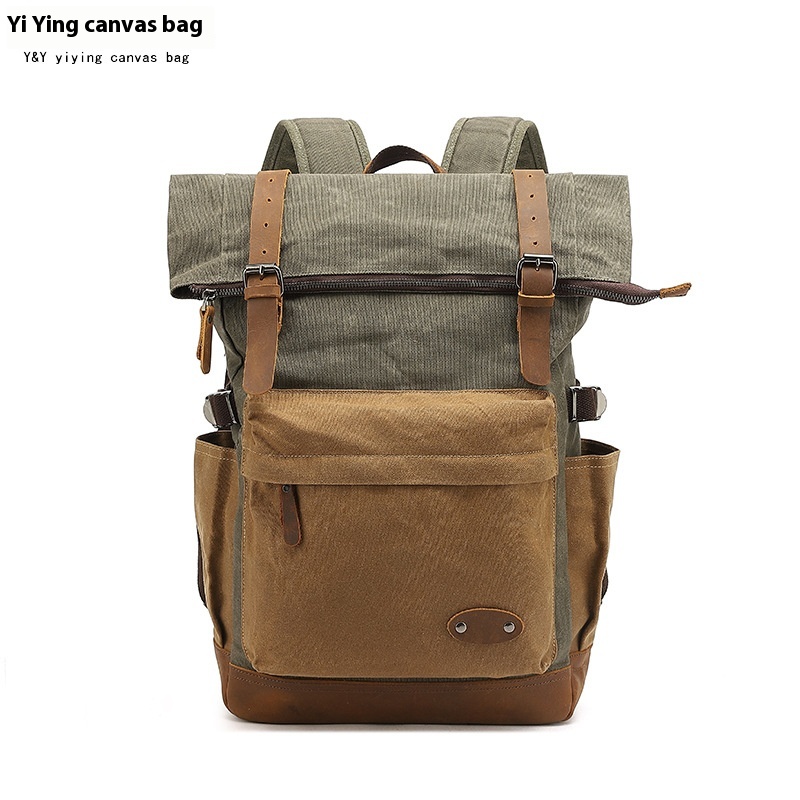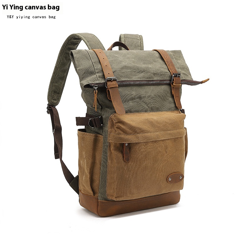 Canvas Backpack For Men,College Student Backpack,Outdoor Travel Computer Bag,Waxed Canvas With Crazy Horse Leather,Water-repellent