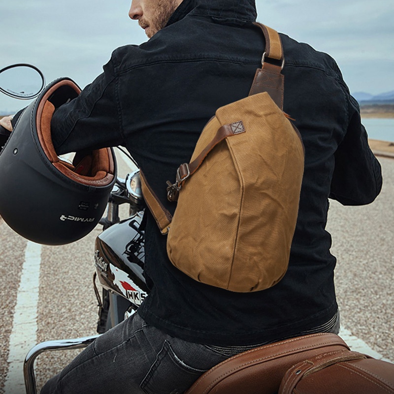 Waxed Canvas Chest Bag Men's Travel Crossbody Top Layer Cowhide Bag