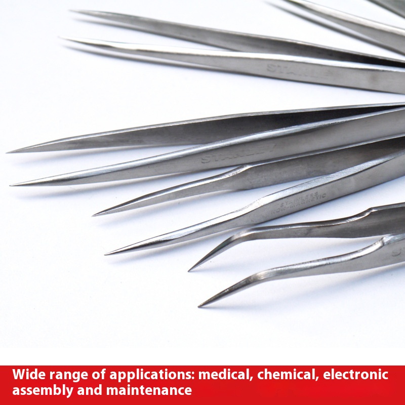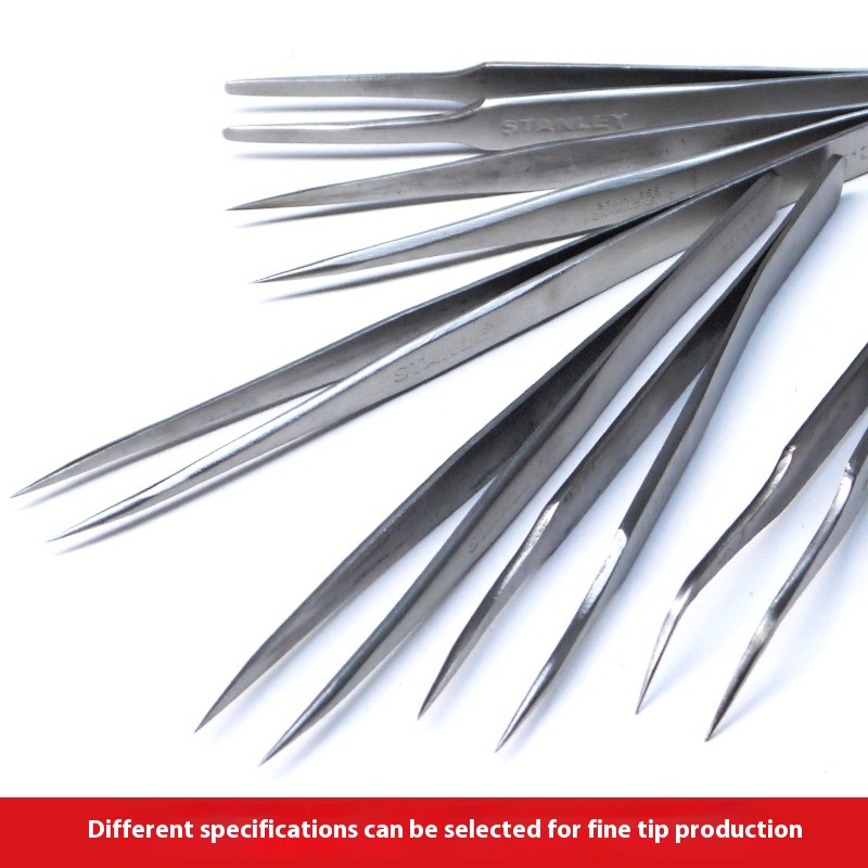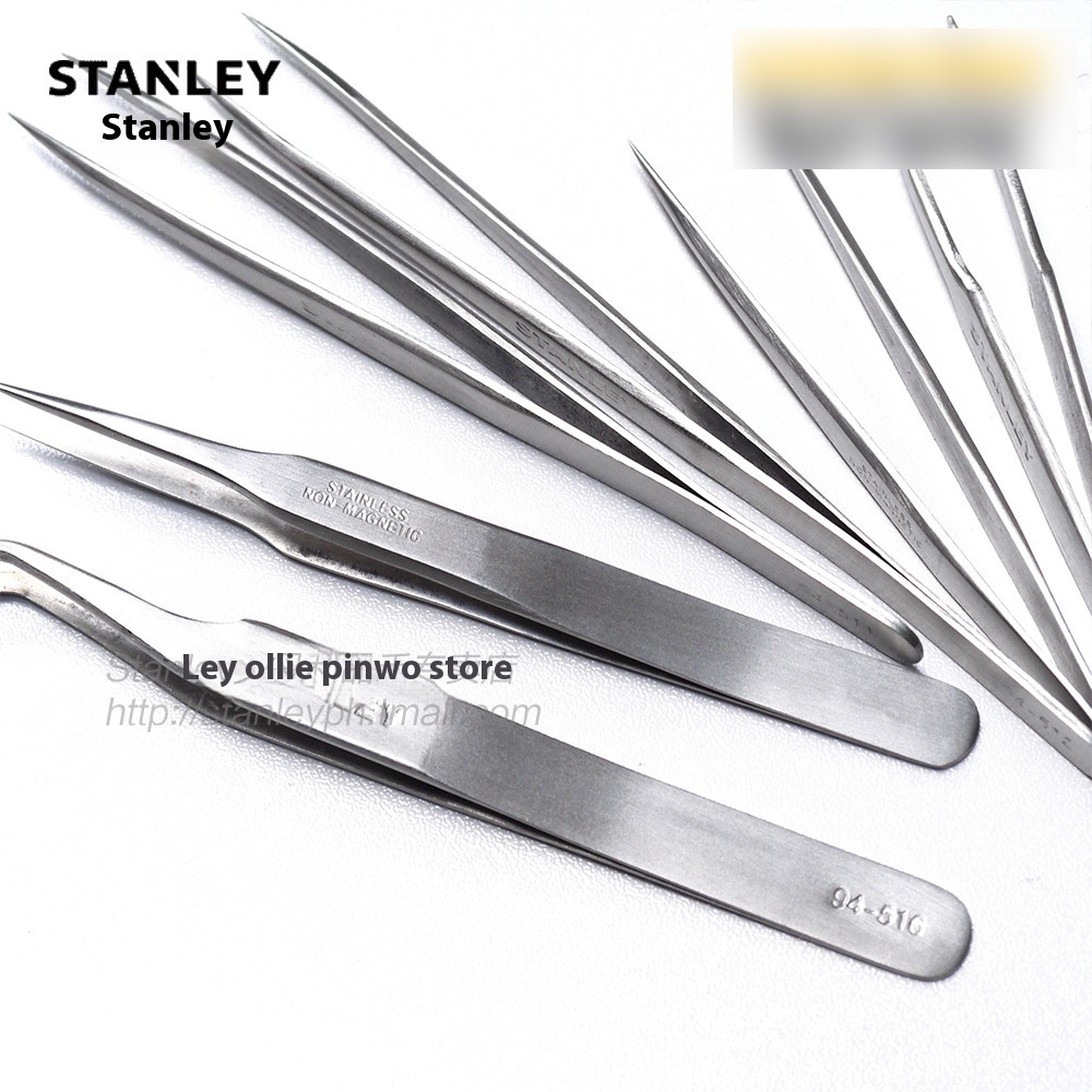 Stanley Tweezers Sharp Curved Wide Black Head316 Stainless Steel Tweezers Clip Long Handle Anti-static Small Pointed Mouth Tool Maintenance