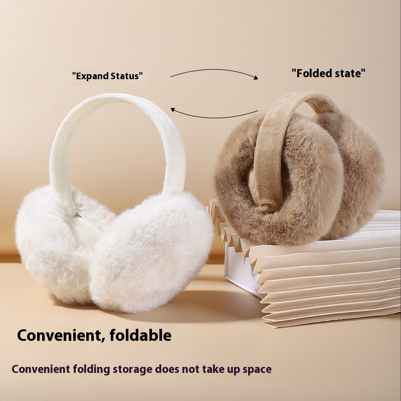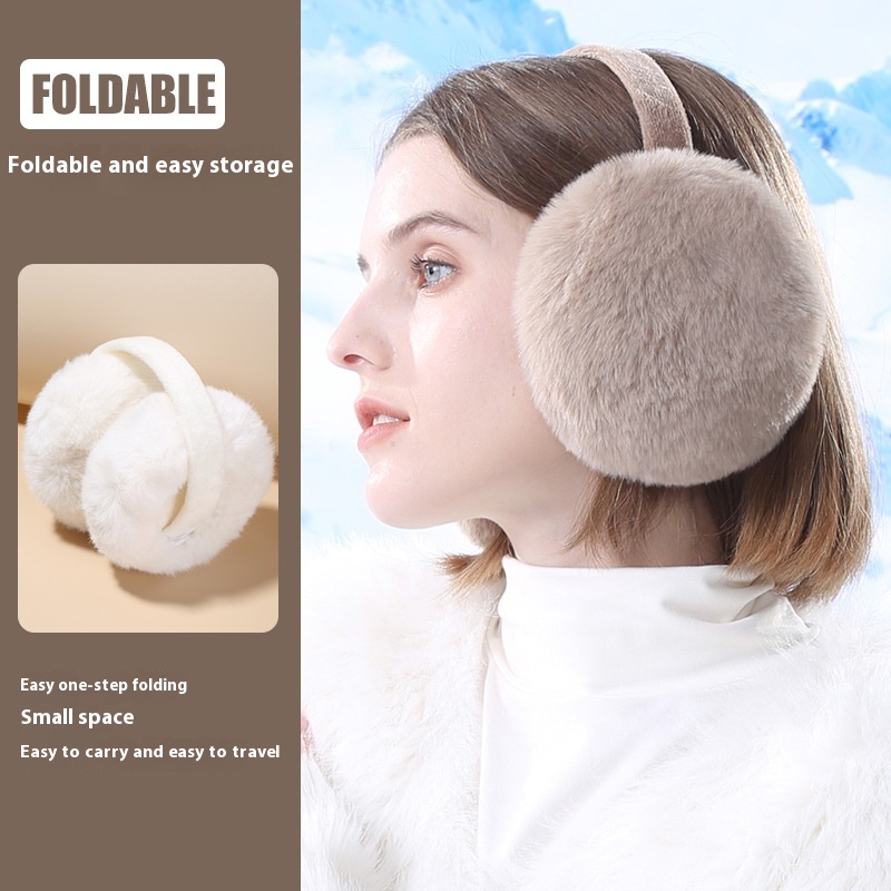 Winter Foldable Earmuffs Warm Earmuffs For Women Maillard Style Students Cute Plush Imitation Rabbit Fur Antifreeze Earmuffs