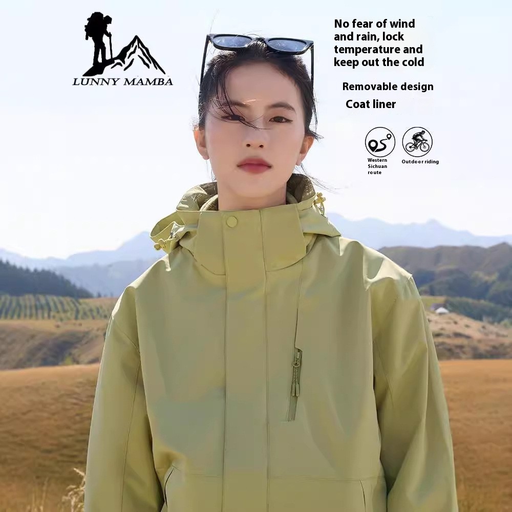 Camel LNCAMELFruit Green Jacket Women's Three-in-one Outdoor Autumn And Winter Plus Velvet Thickened Jacket