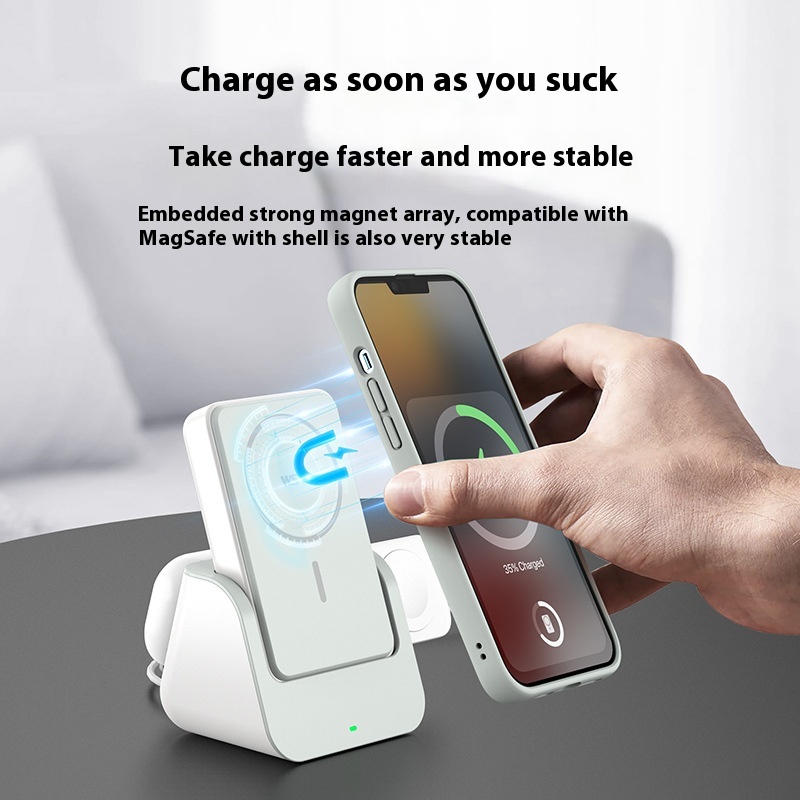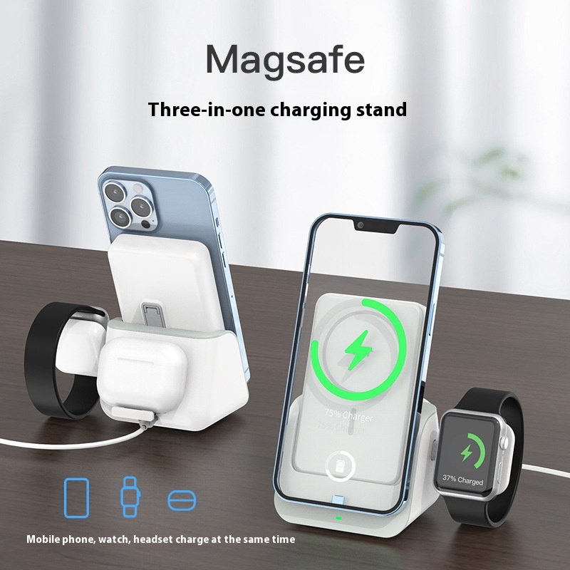 Magnetic Wireless Power Bank With Phone Stand,10,000m Ah3-in-1 Multifunctional Charging Dock And Portable Power Bank