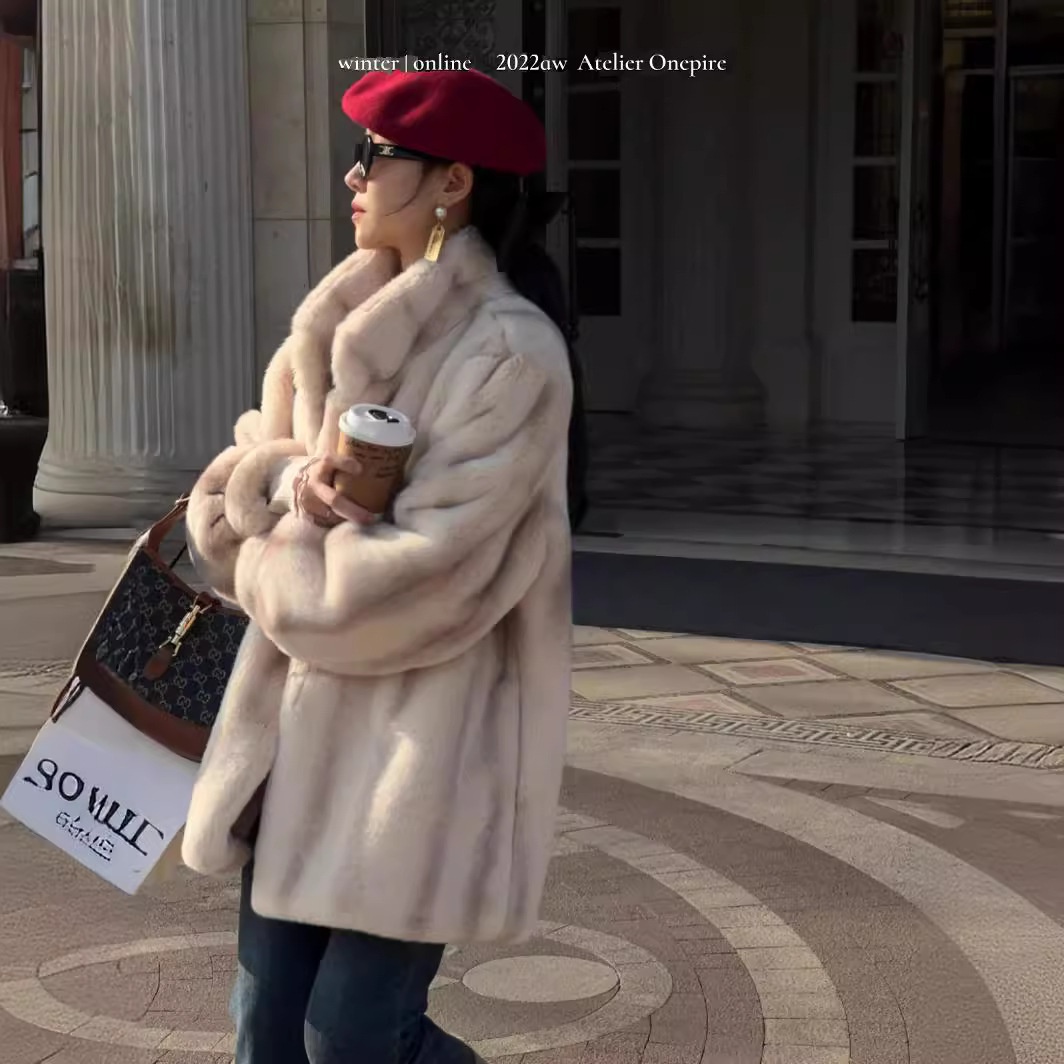 Winter Retro Eco-friendly Fur Coat Mid-Length Over-Knee High-grade Mink Velvet Thickened Plush Coat For Women
