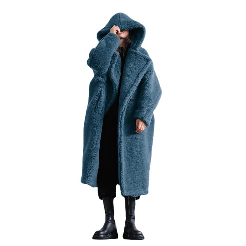 Autumn And Winter Casual Imitation Fur Coat Women's Coat Mid-length European And American Hooded Lapel Fashionable Lamb Wool Temperament