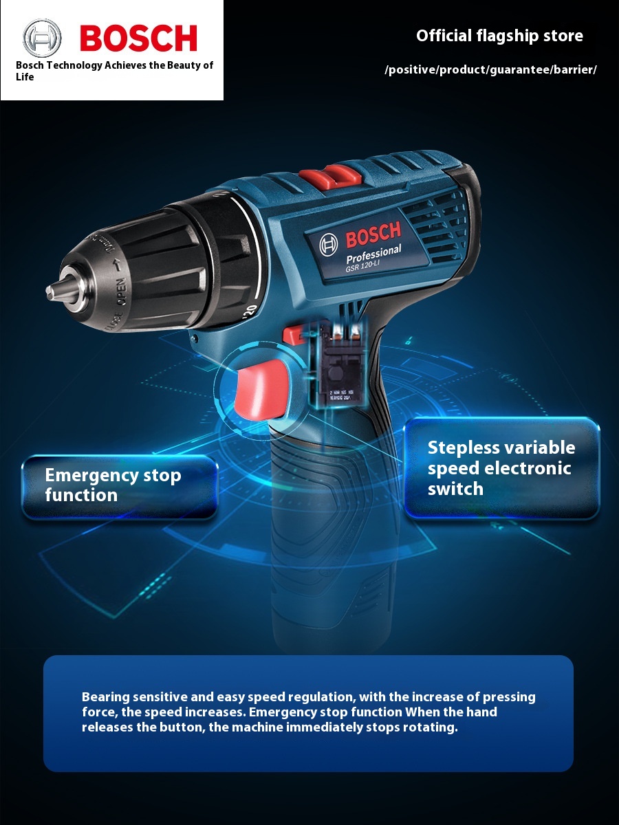 Bosch Rechargeable Drill Rechargeable Hand Drill Electric Screwdriver G S R120- L I Lithium Battery12 V Tool Battery Drill