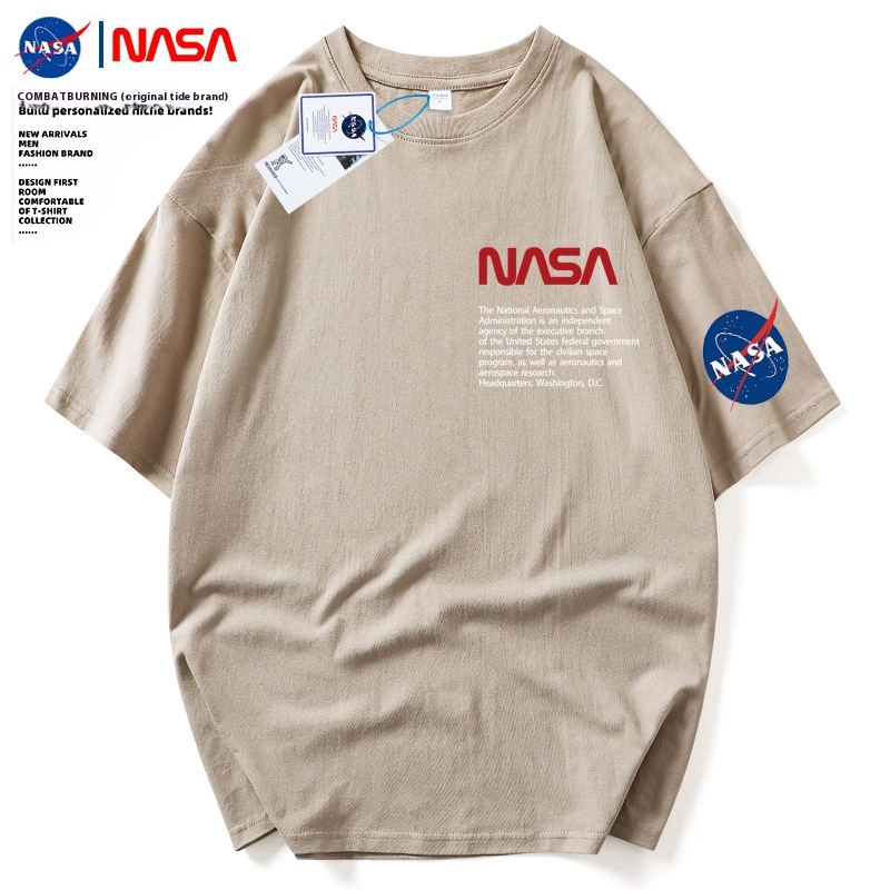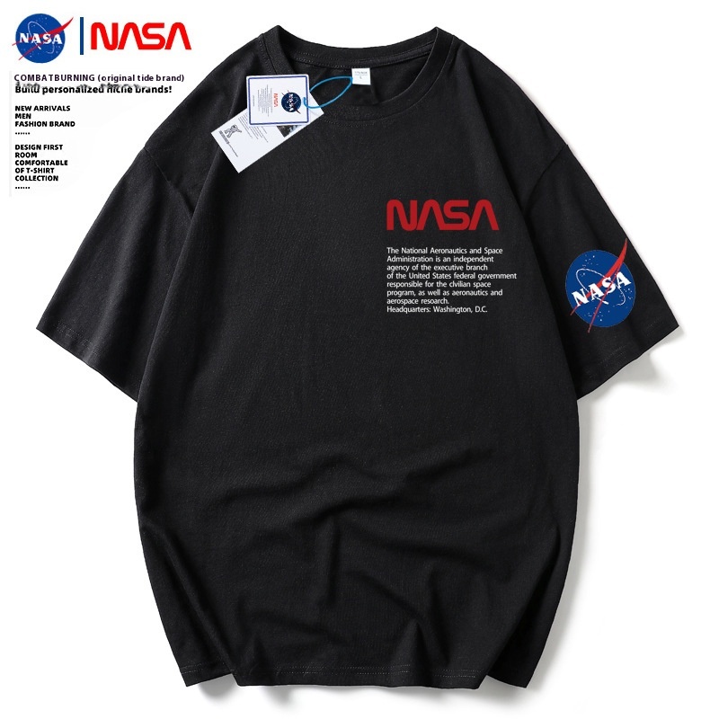 NASAJoint Pure Cotton Short-sleeved T-shirt Men And Women Couple Loose Large Size Bottoming Shirt Half-sleeved Ice Sense T-shirt Top Clothes