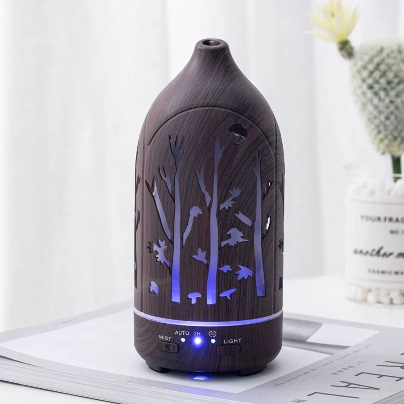 LEDColorful Wooden Grain Rotating Hollow Essential Oil Diffuser-Elegant Humidifier And Spray For Bedroom And Office.