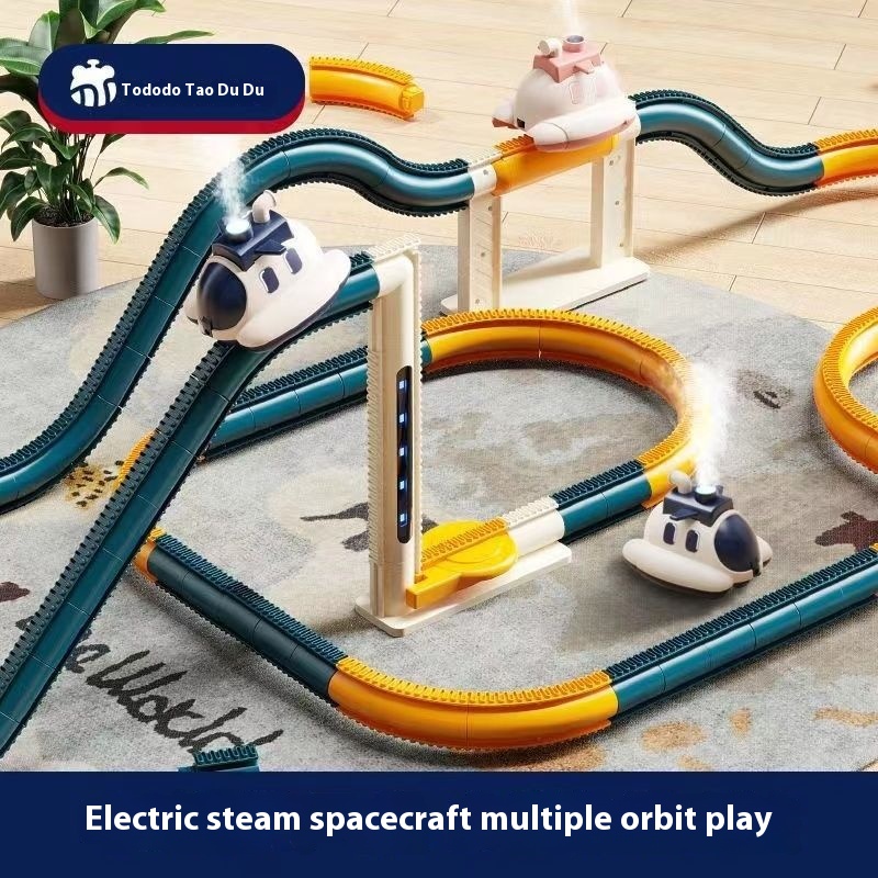 Children's Toy Electric Track Car-Steam Spaceship Challenge Puzzle Car With Assembled Tracks.
