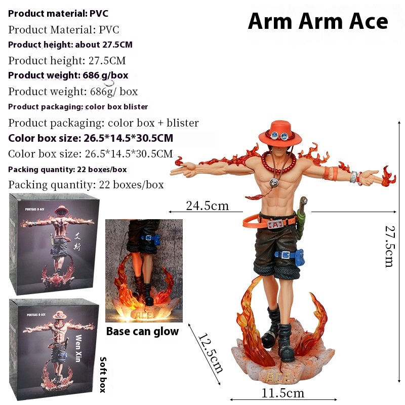 One Piece Portgas D.Ace-Arms Outstretched Cross Ace,Back View Ace,Cosmic Resonance GKIlluminated Statue Model.