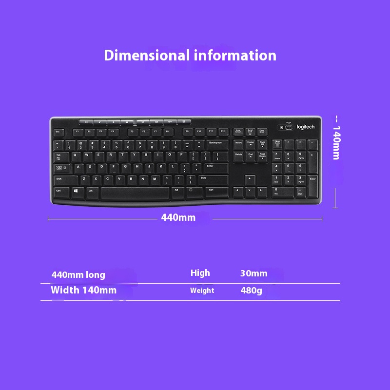 Logitech K270 Wireless Keyboard Durable Multimedia Unifying Full Size Ultra-thin Silent Office Keyboard