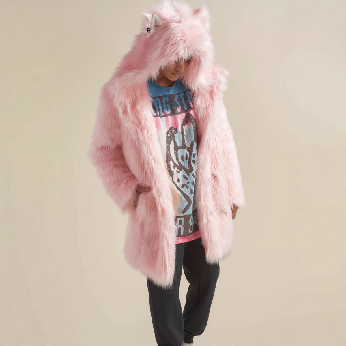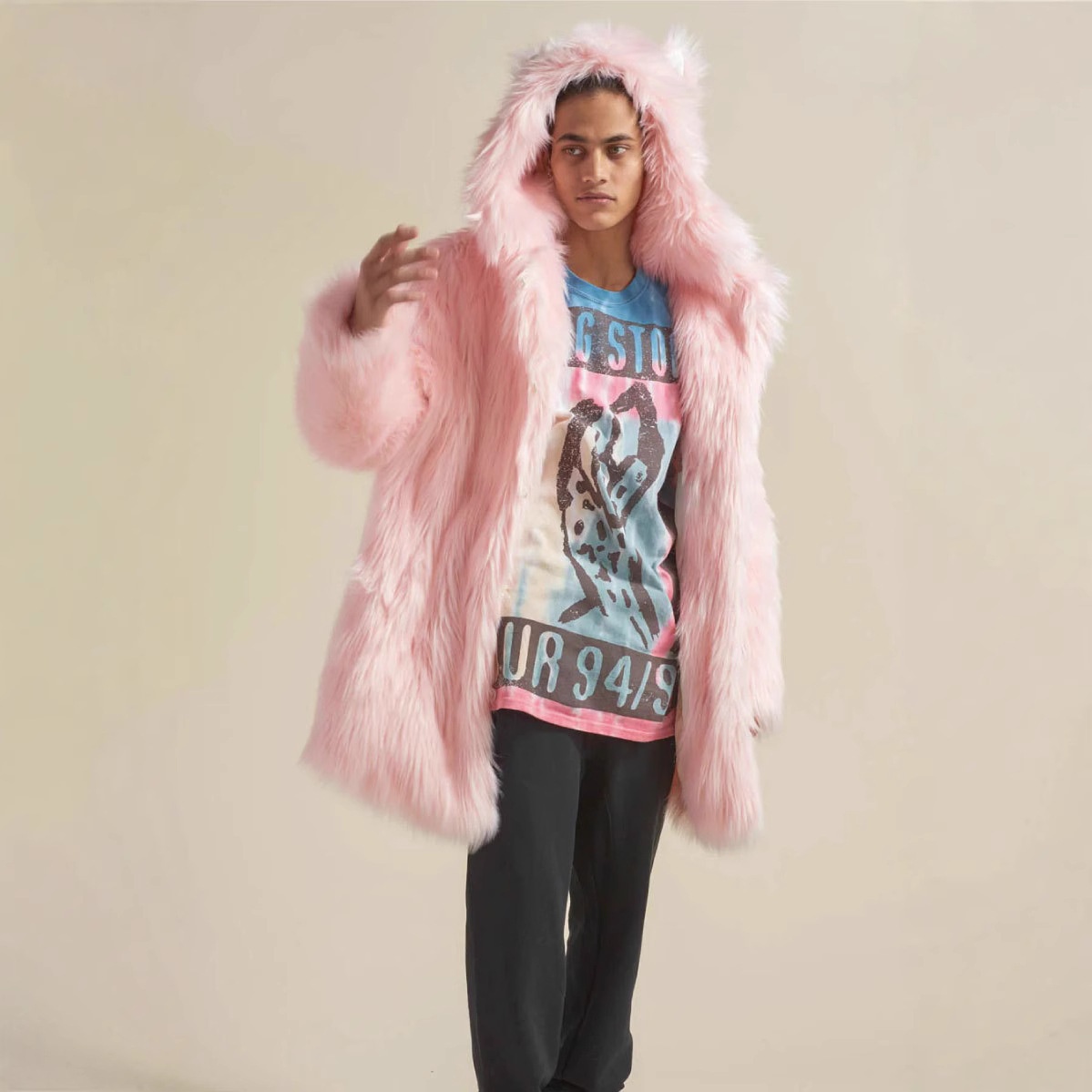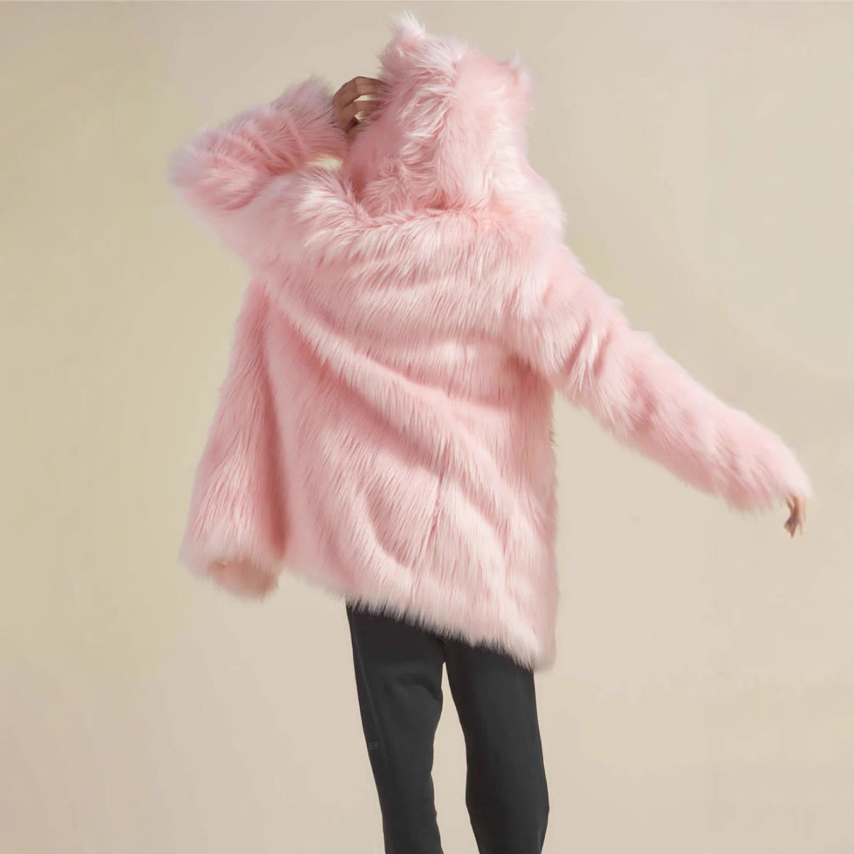 Explosions Faux Fur Coat Men's Long European And American Foreign Trade Ears Hooded Fox Fur Coat
