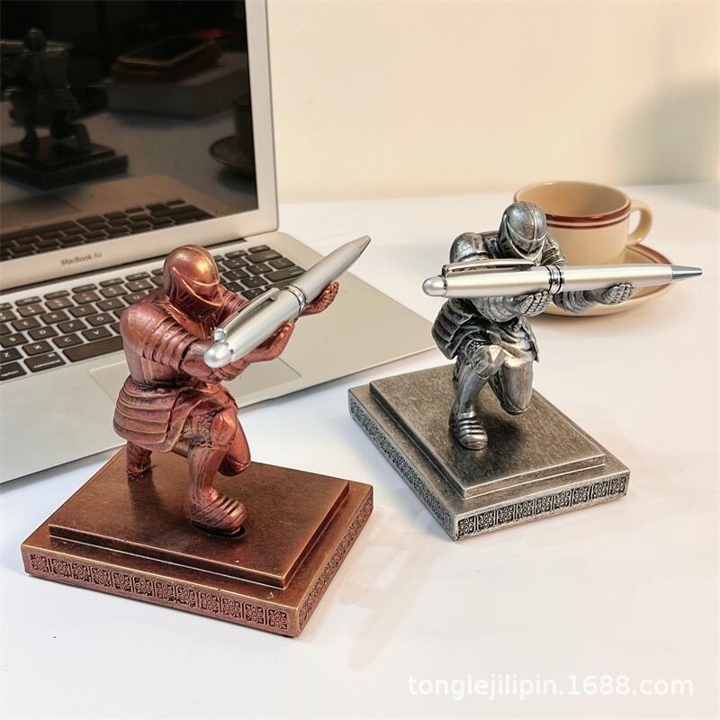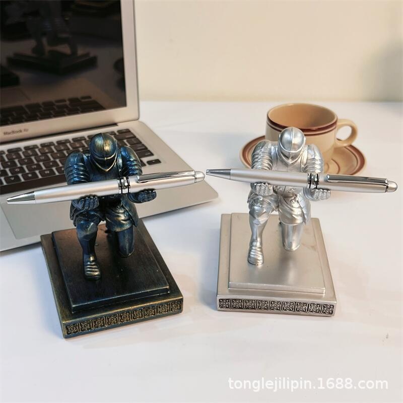 Creative Ornaments Kneeling Executive Knight Pen Holder Soldier Armor Hero Pen Holder Stationery Pen Holder