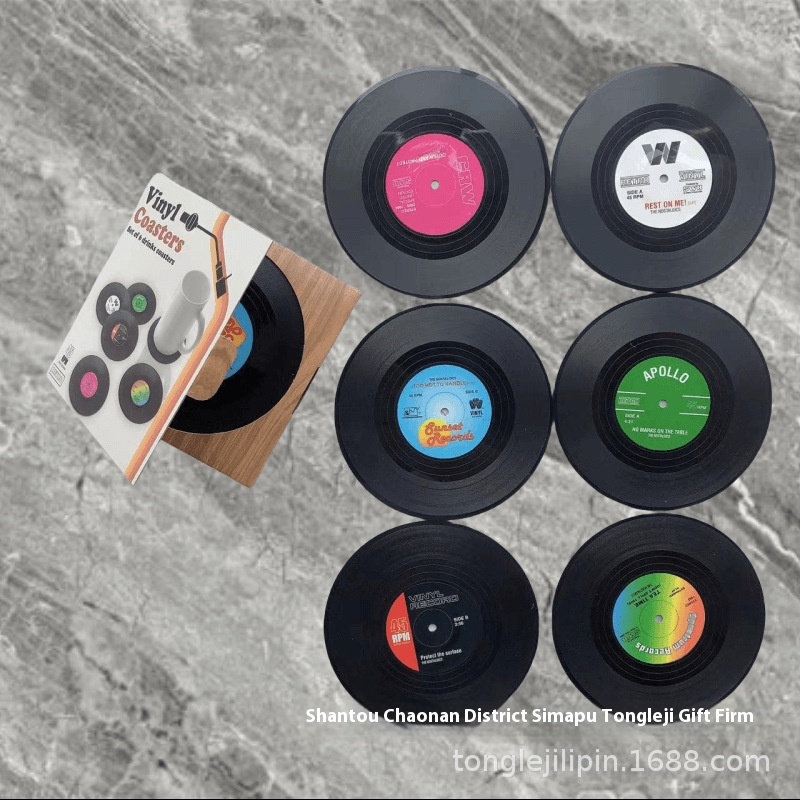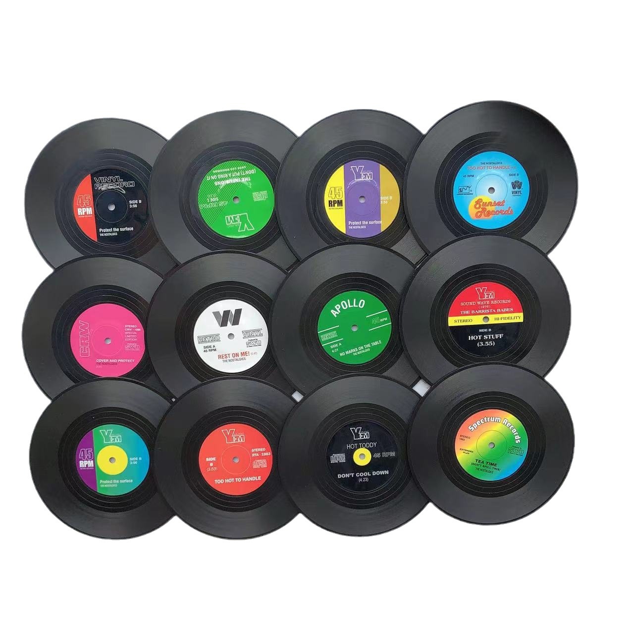 Retro Record Coasters Vinyl Placemats Retro Vinyl Coffee Coasters Anti-slipulation Pads Round