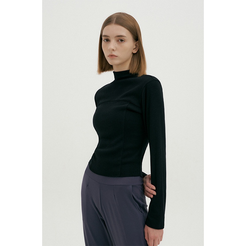 European And American Foreign Trade Autumn And Winter Half-high Collar Line Cutting Sense Yoga Clothes Warm Inner Long-sleeved Sports Shirt