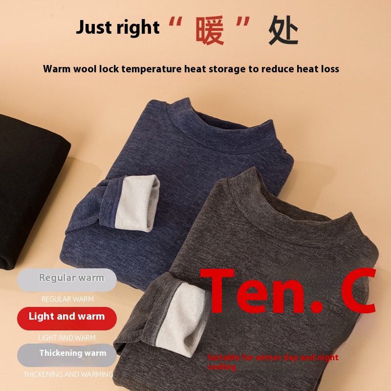 Cashmere Silk Plus Velvet Thickened Thermal Underwear Men's Suit Half Turtleneck Fever Middle-aged And Elderly German Velvet Warm Clothing Winter
