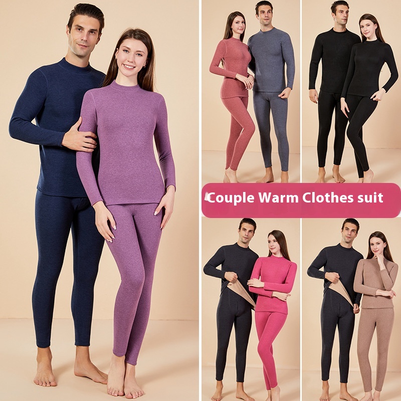 Thermal Underwear Autumn Clothes Autumn Pants Cashmere Silk Couple Suit Plus Velvet Thick Heating Plus Size Bottoming Shirt For Women