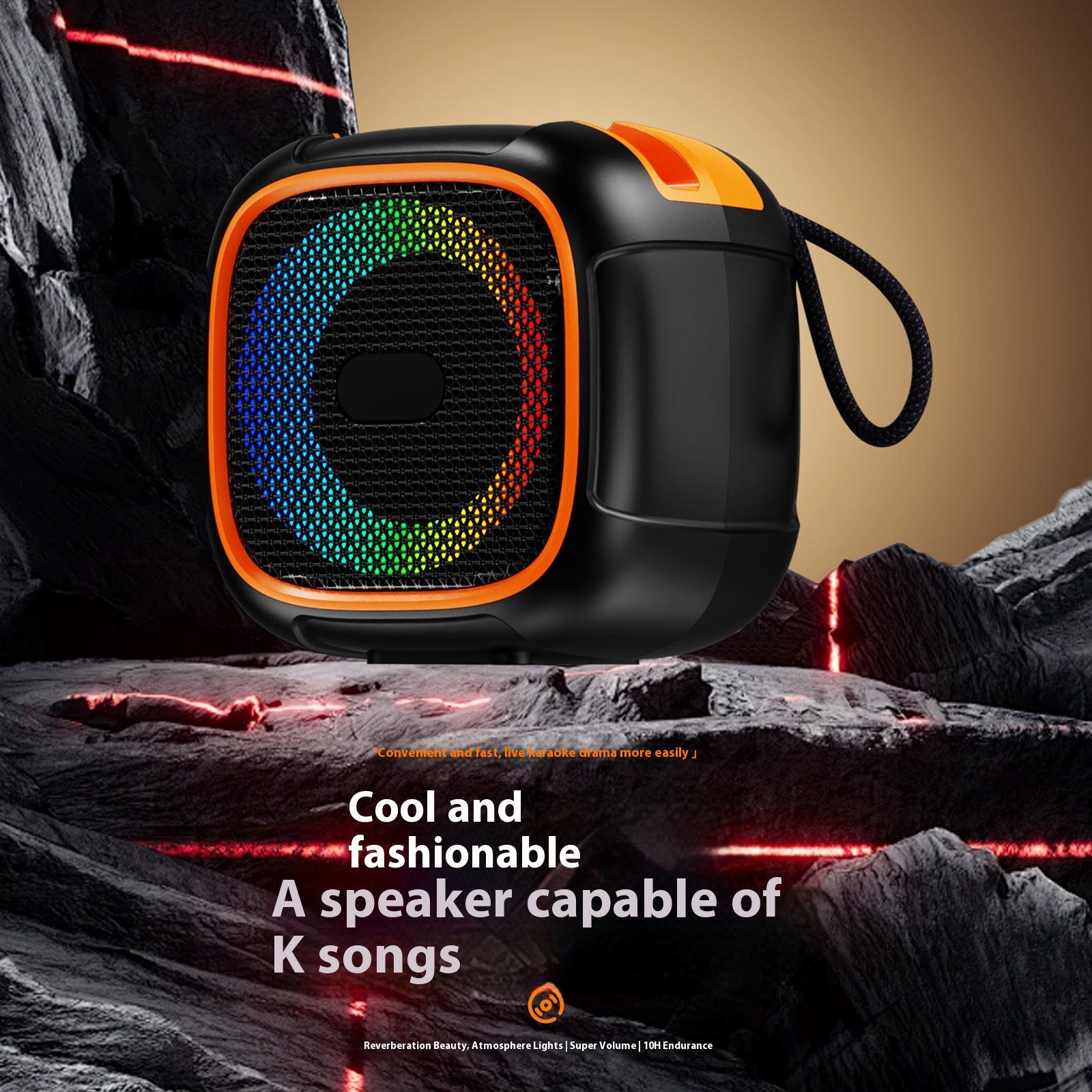 Portable Outdoor Wireless Bluetooth Speaker With Colorful Lights–Stand-Integrated Mini Bass Boom Box