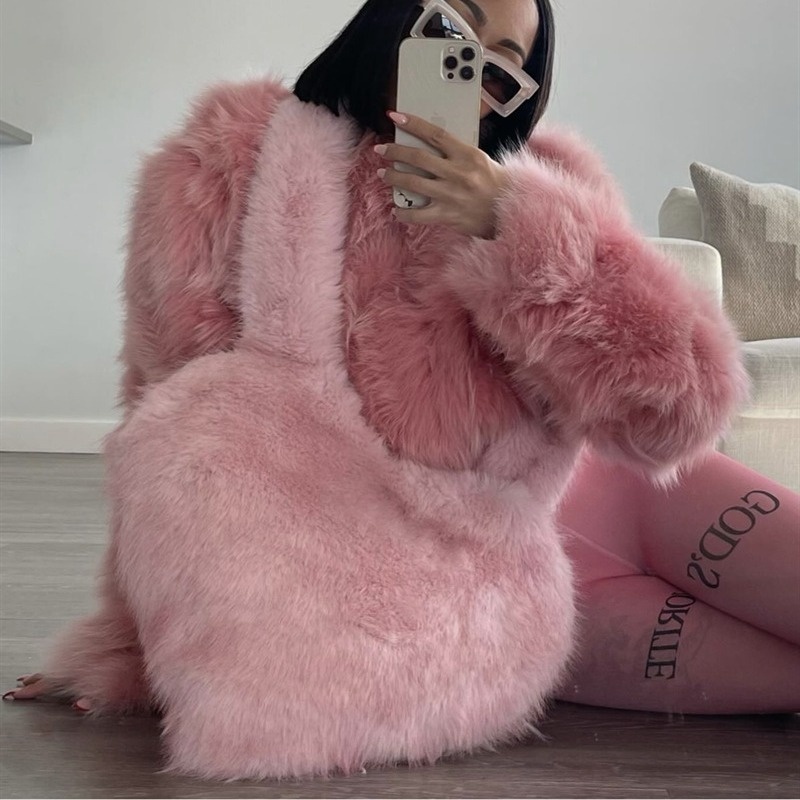 European And American Crossbody Plush Bag Sweet Cool Fairy Pink Love Bag Hand-held Crossbody Hot Girl Imitation Fox Fur