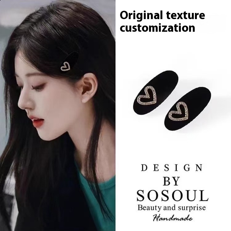 Mini Velvet Heart Hair Clip:Side Clip With Rhinestones,Elegant Women’s Hair Accessory