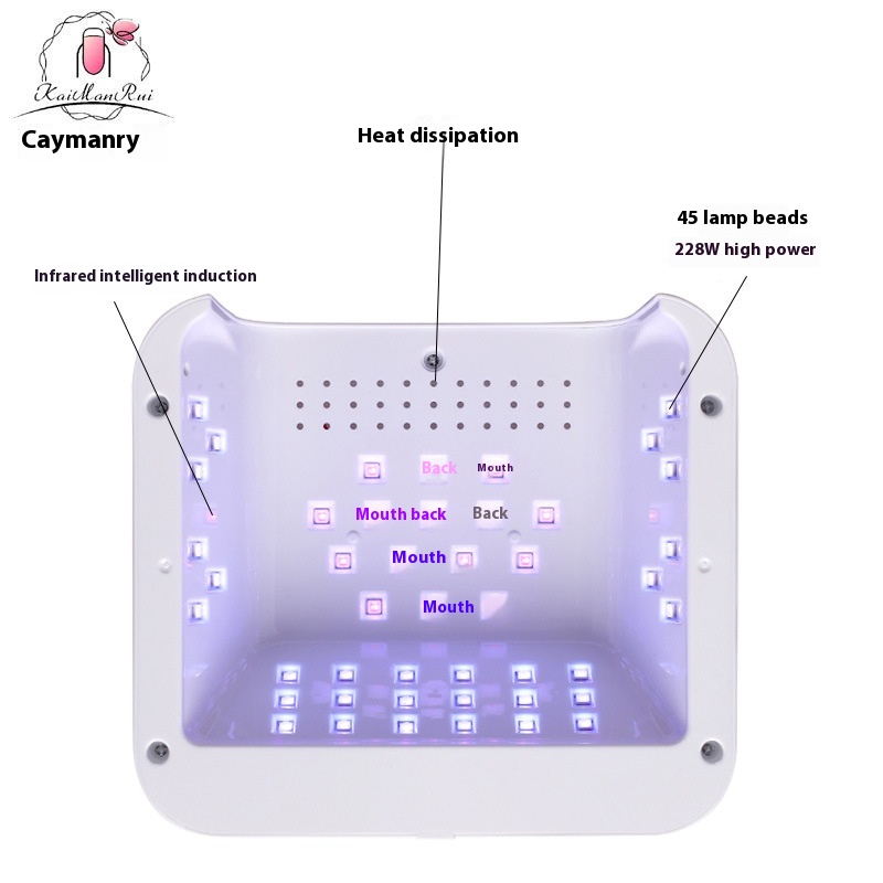 Square Smart Nail Lamp:228 WHigh-Power Gel Polish UVLamp With Four Timer Settings,Non-Darkening Hand Protection For Manicure