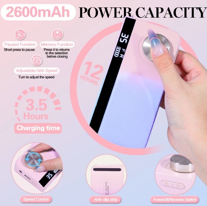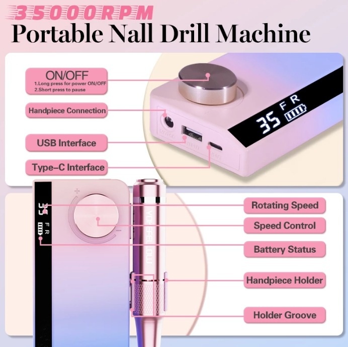 Rechargeable UV501 Gradient Nail Drill:35,000 RPMElectric Nail Filing And Gel Polish Removal Machine