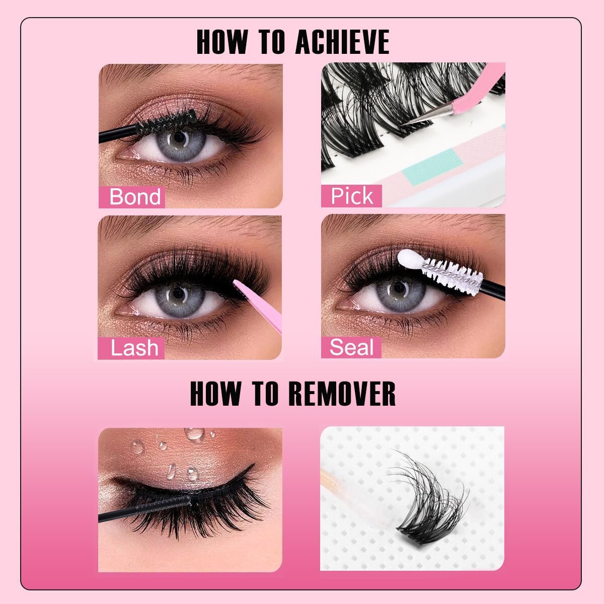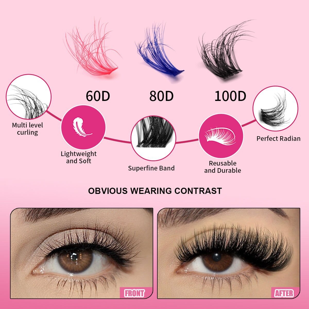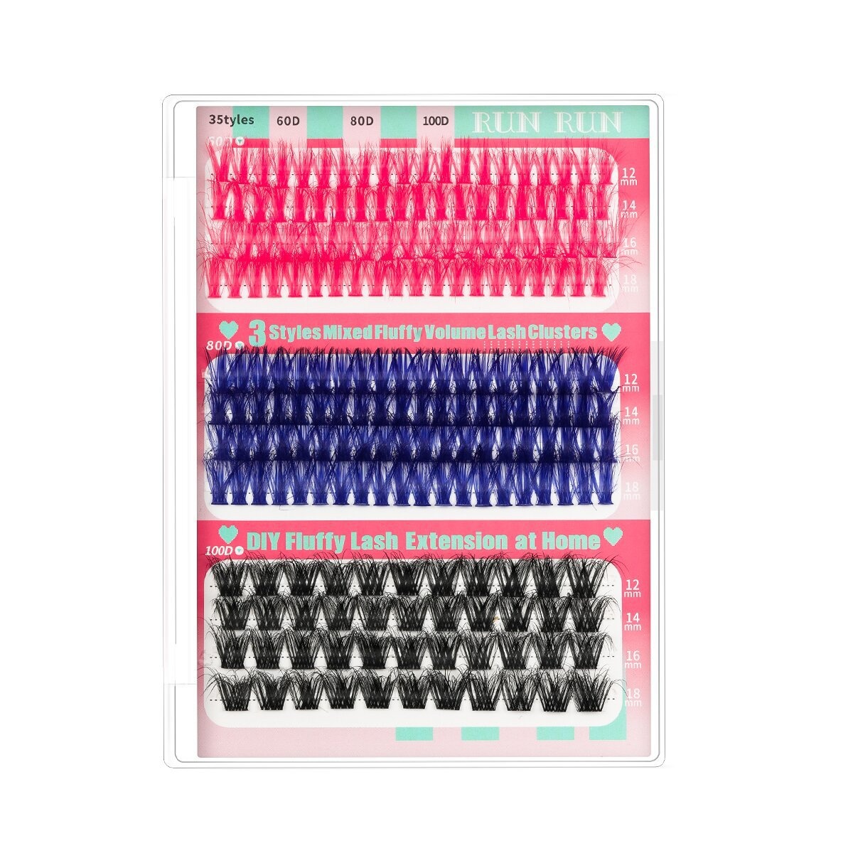 High-Capacity Colorful False Eyelash Set:60 D,80 D,And100 DMixed Segmental DIYCluster Lashes For AVoluminous Look