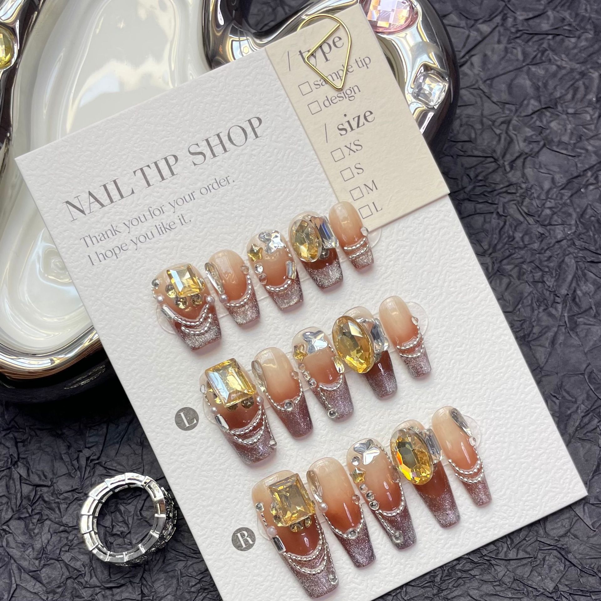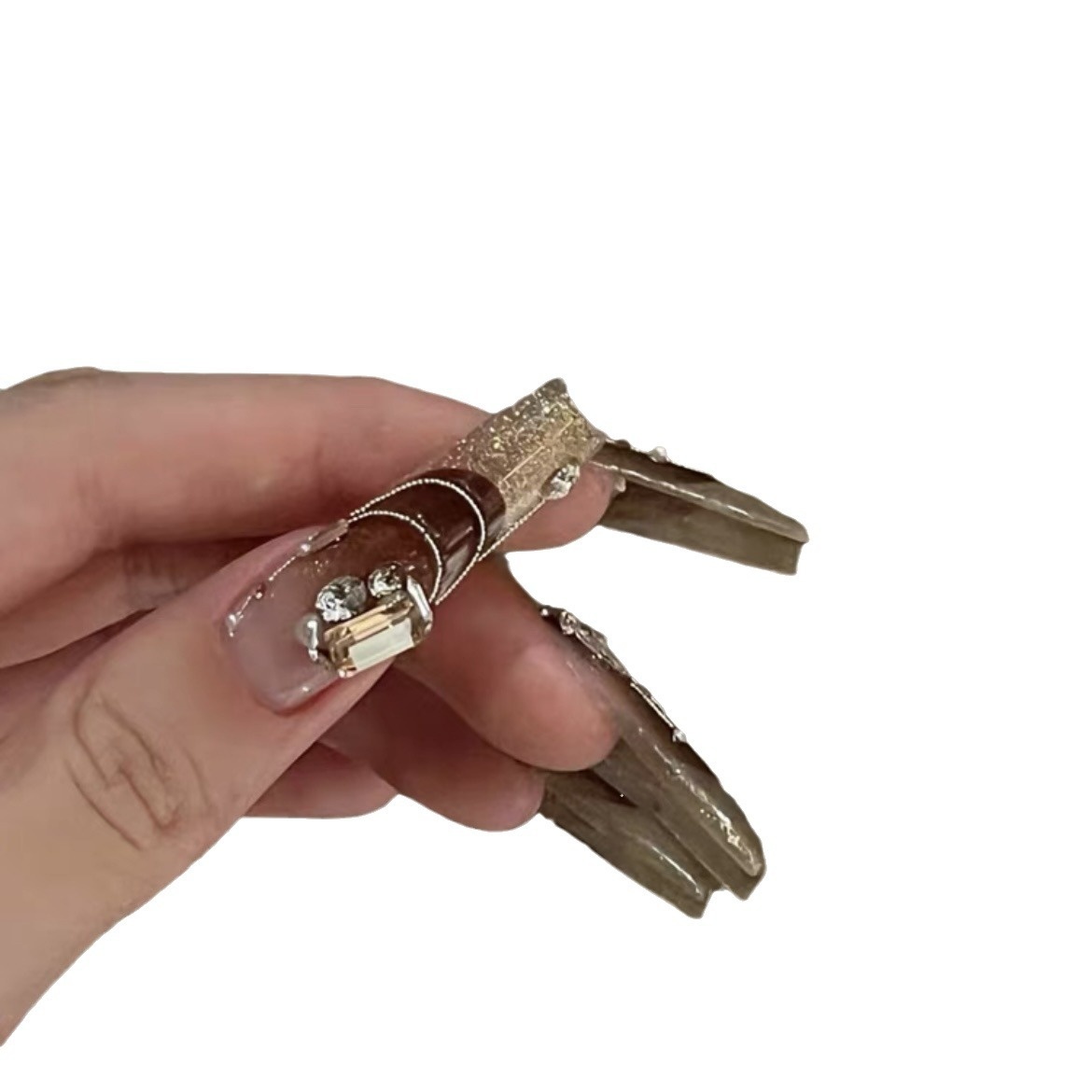 Gorgeous And Rich Manicure,Wealthy Lady,European And American Long Ladder,French Cat's Eye Gradient,Long Autumn,Detachable And Wearable Nails