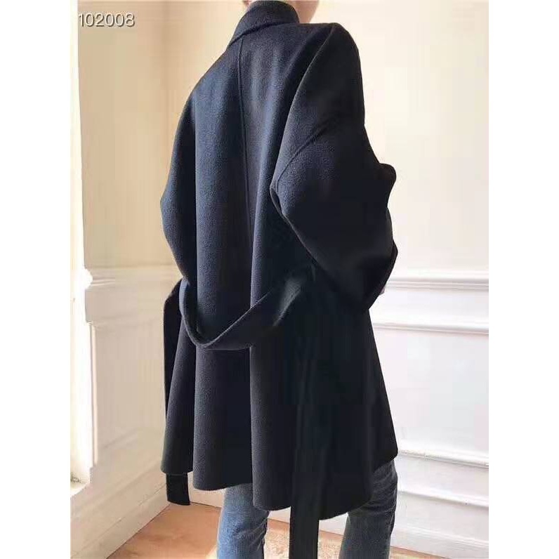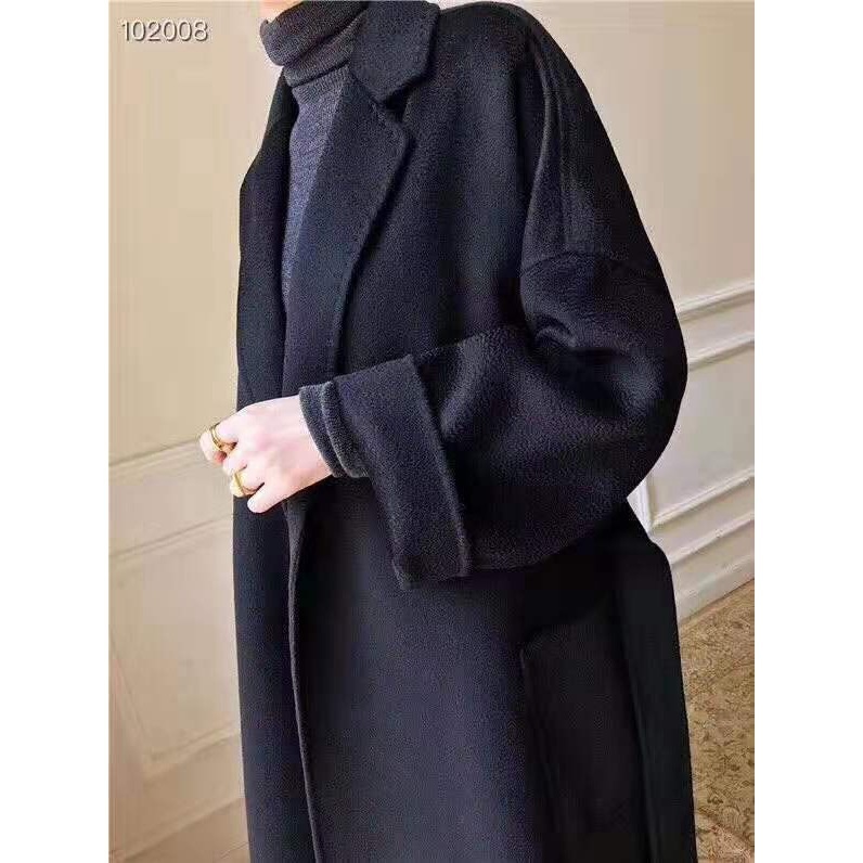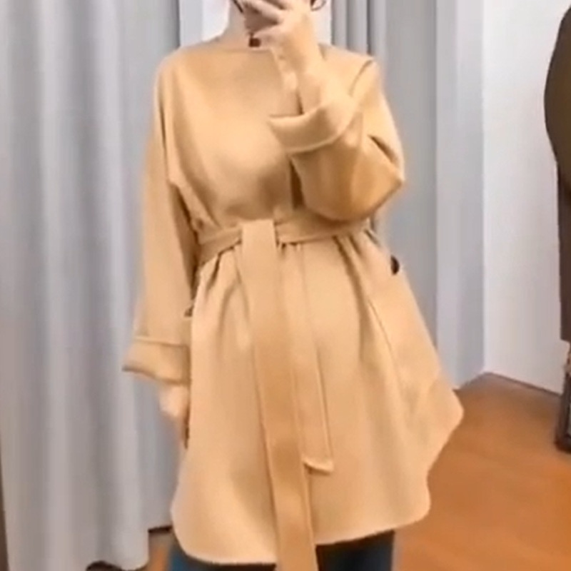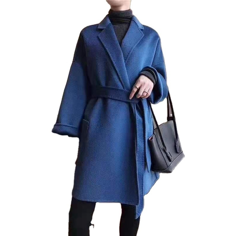 Luxury Water Ripple Double-Sided Cashmere Coat Mid-Length Pure Wool Robe-Style Trench Coat