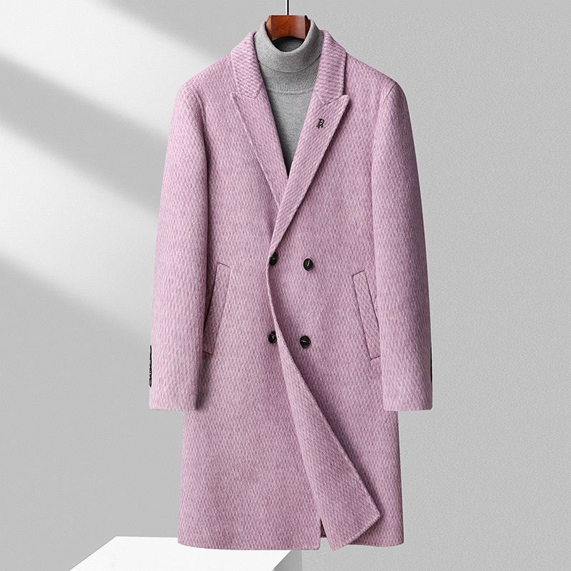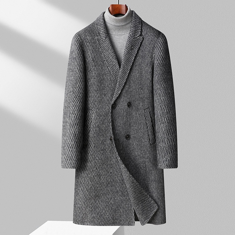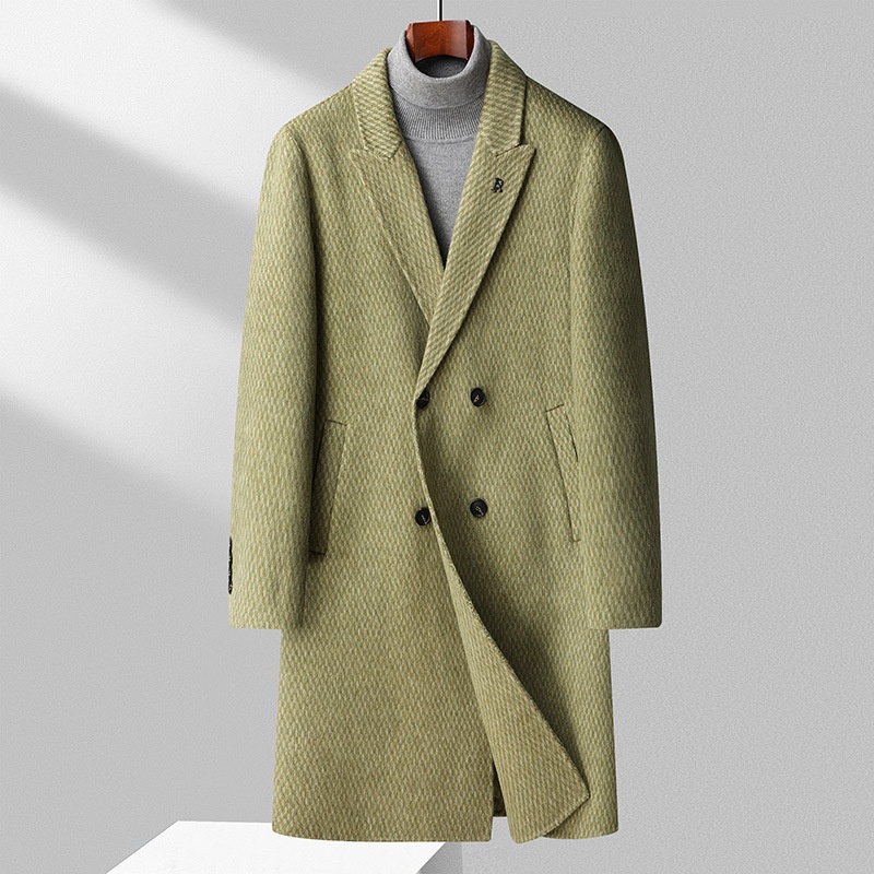 Men's Handmade Double-Sided Wool Coat:Long Overcoat,Over-the-Knee Double-Breasted Wool Trench Coat