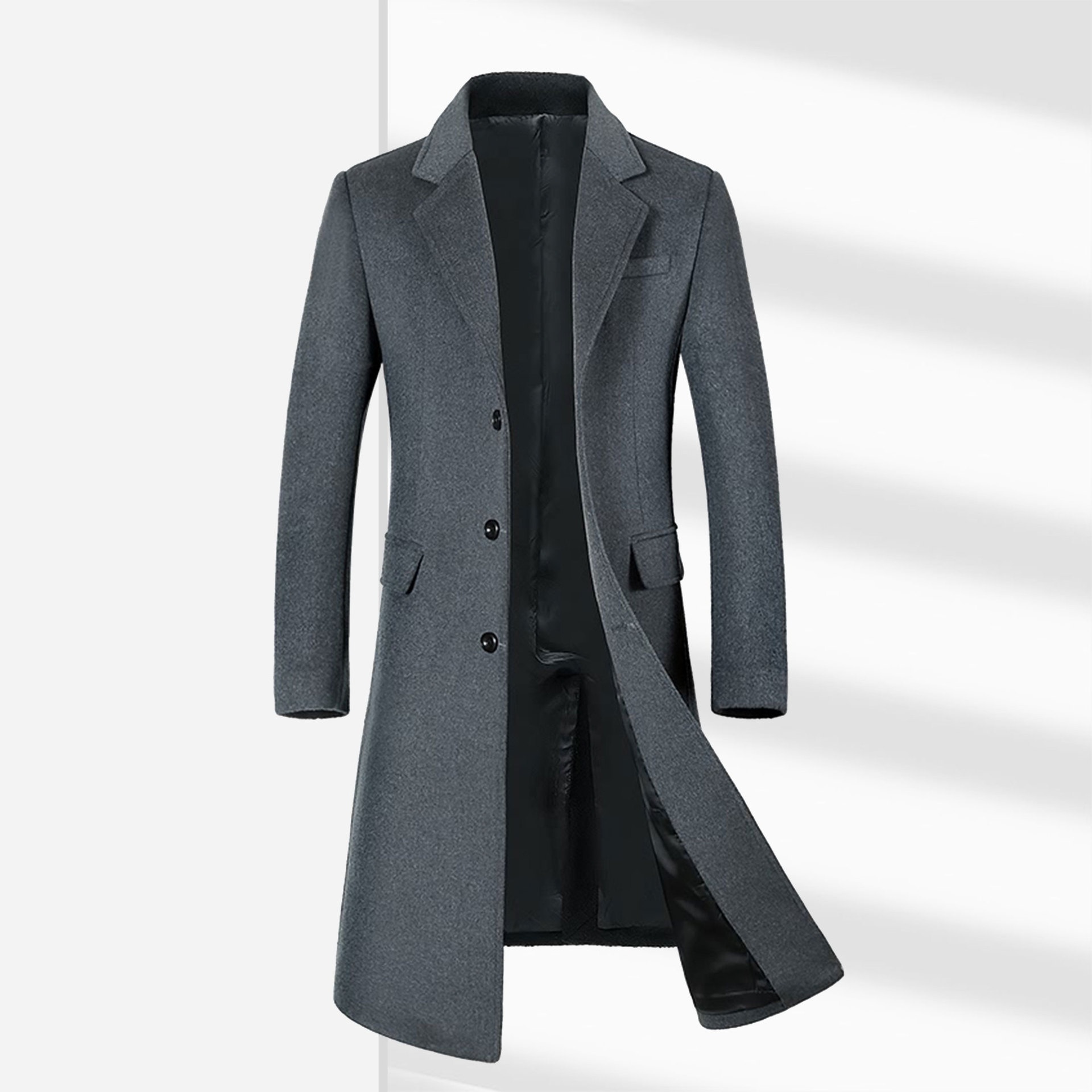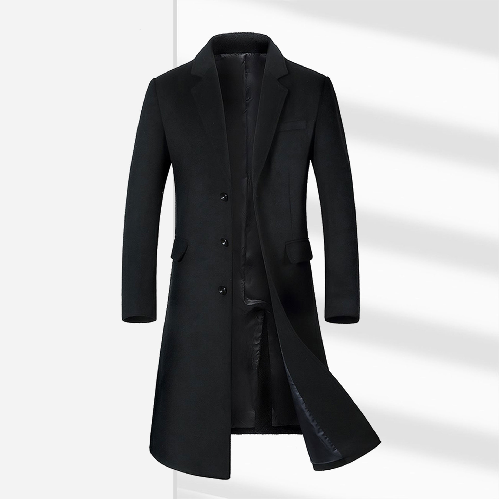Wool Coat With Cotton Padding:Thickened British-Style Over-the-Knee Long Trench Coat