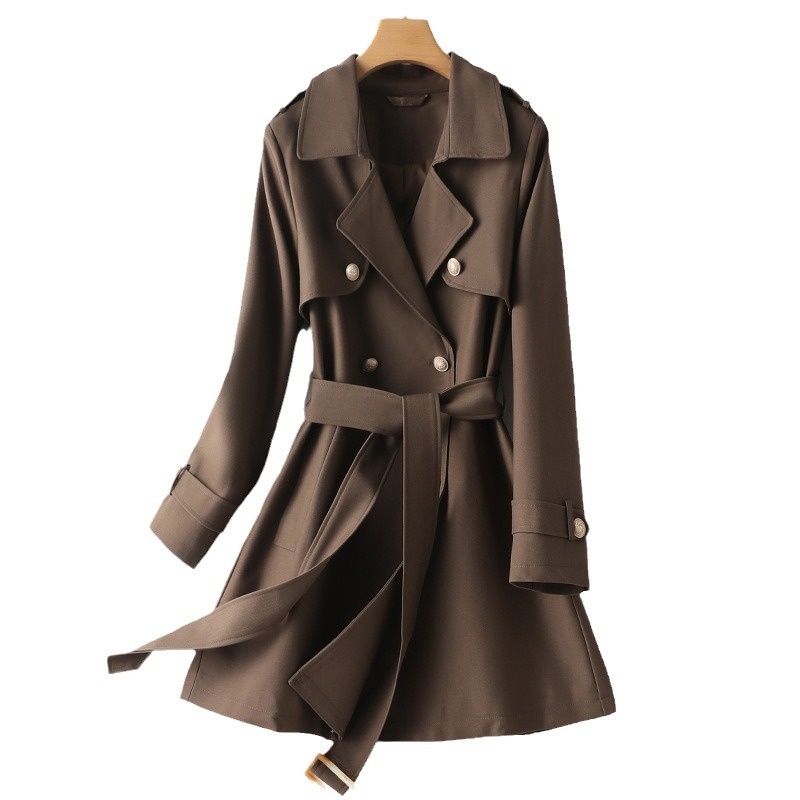 British-Style Double-Breasted Trench Coat:Long-Sleeve Lapel Design With Belted Waist For ASlim-Fit Look