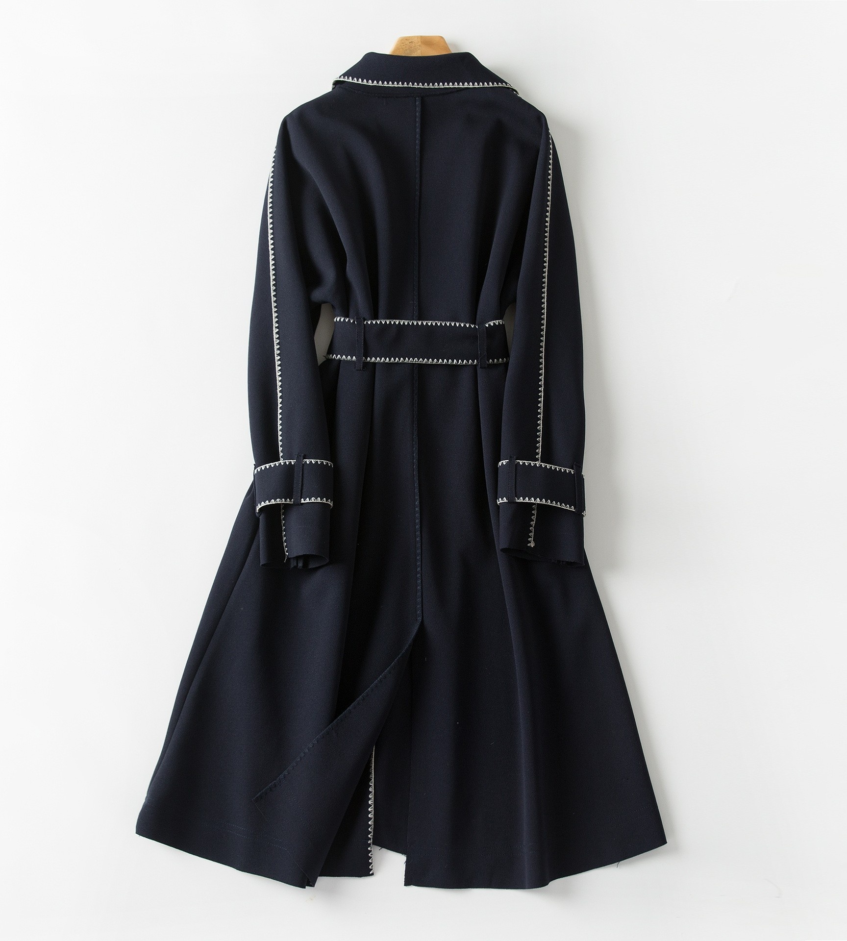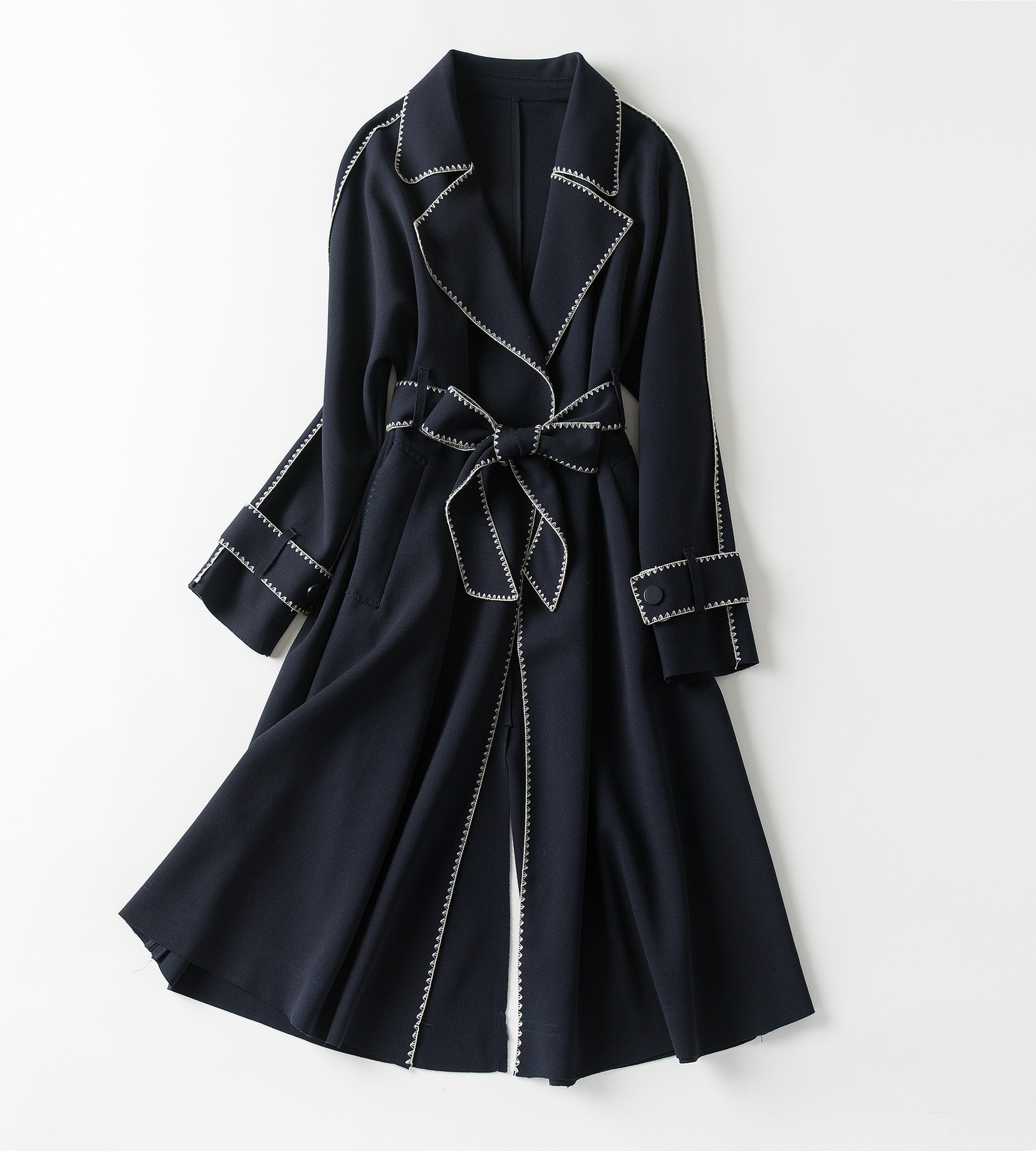 Acetic Fiber Long Trench Coat:British-Style Waist-Tied Design With Back Slit Draped Overcoat