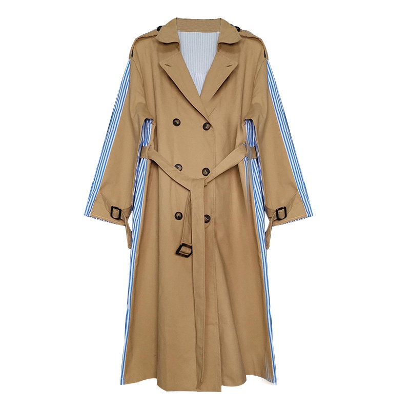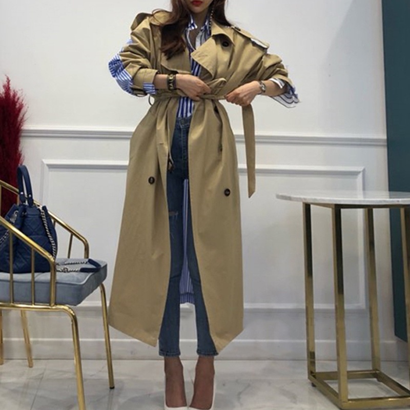 Mid-Length Over-the-Knee Trench Coat:Loose-Fit Hong Kong Style Overcoat