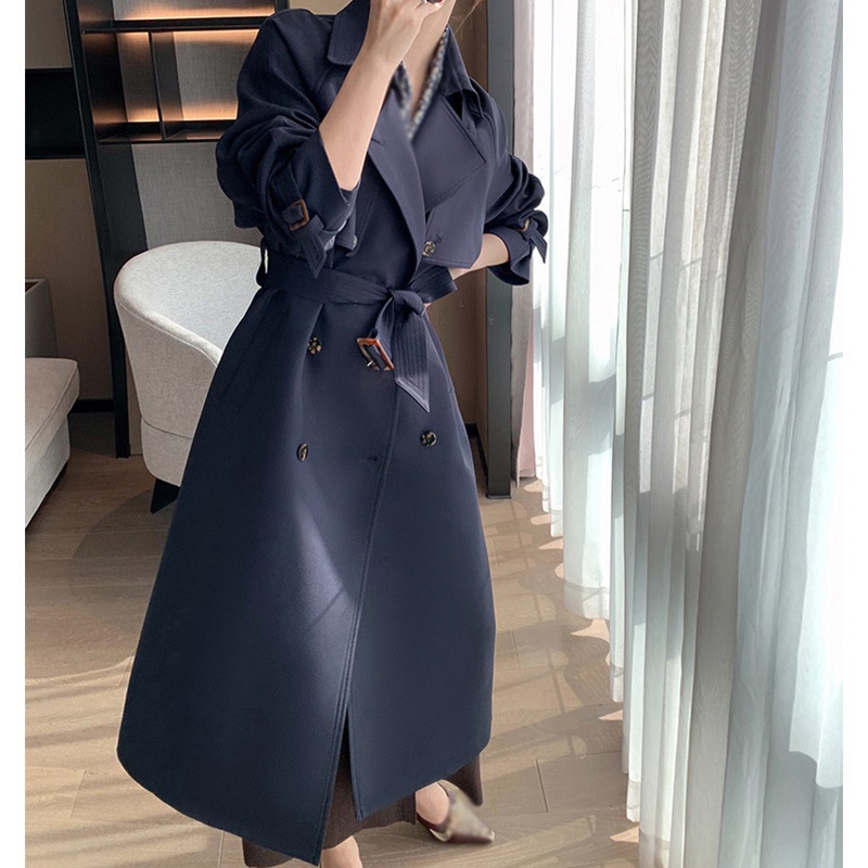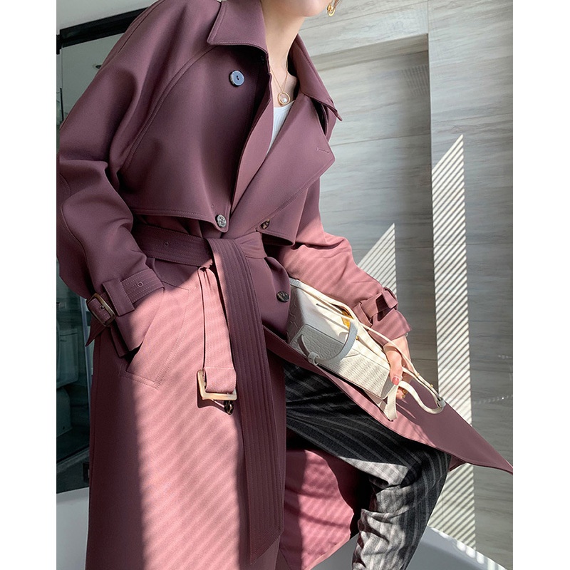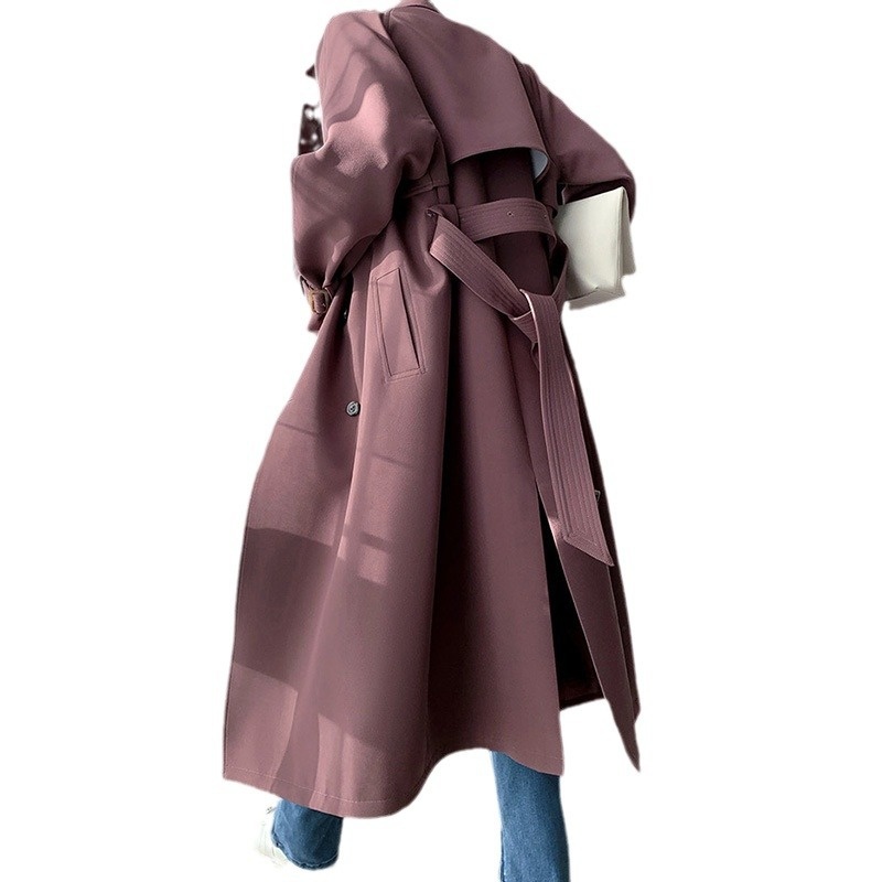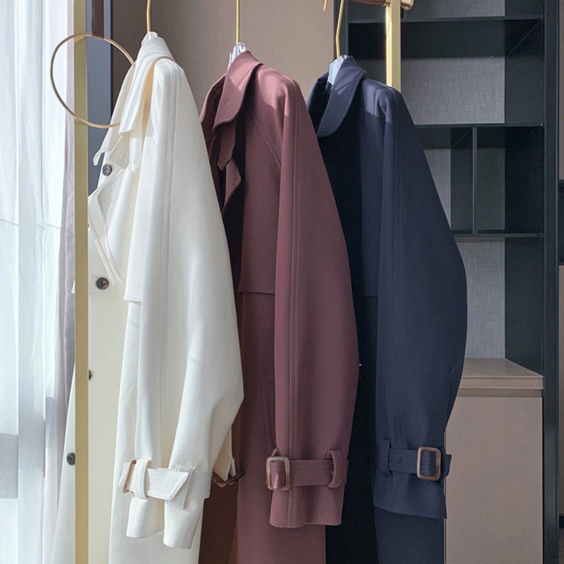 Mid-Length British-Style Trench Coat:Elegant Loose-Fit"White Moonlight"Overcoat