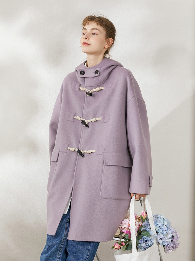 British Vintage Mid-Length Wool Coat:Hooded Duffle Coat With Toggle Buttons In Preppy Style