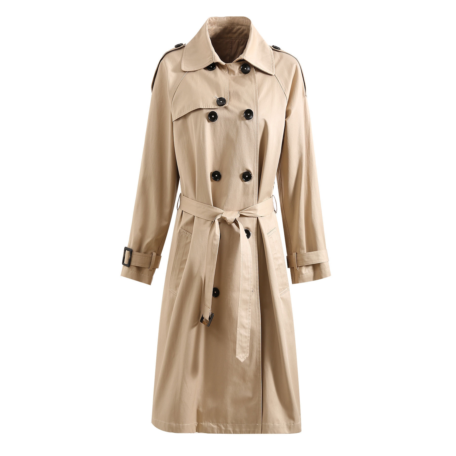 British-Style Extra-Long Over-the-Knee Trench Coat:Double-Breasted Design With Belt,Fashionable And Classic Style