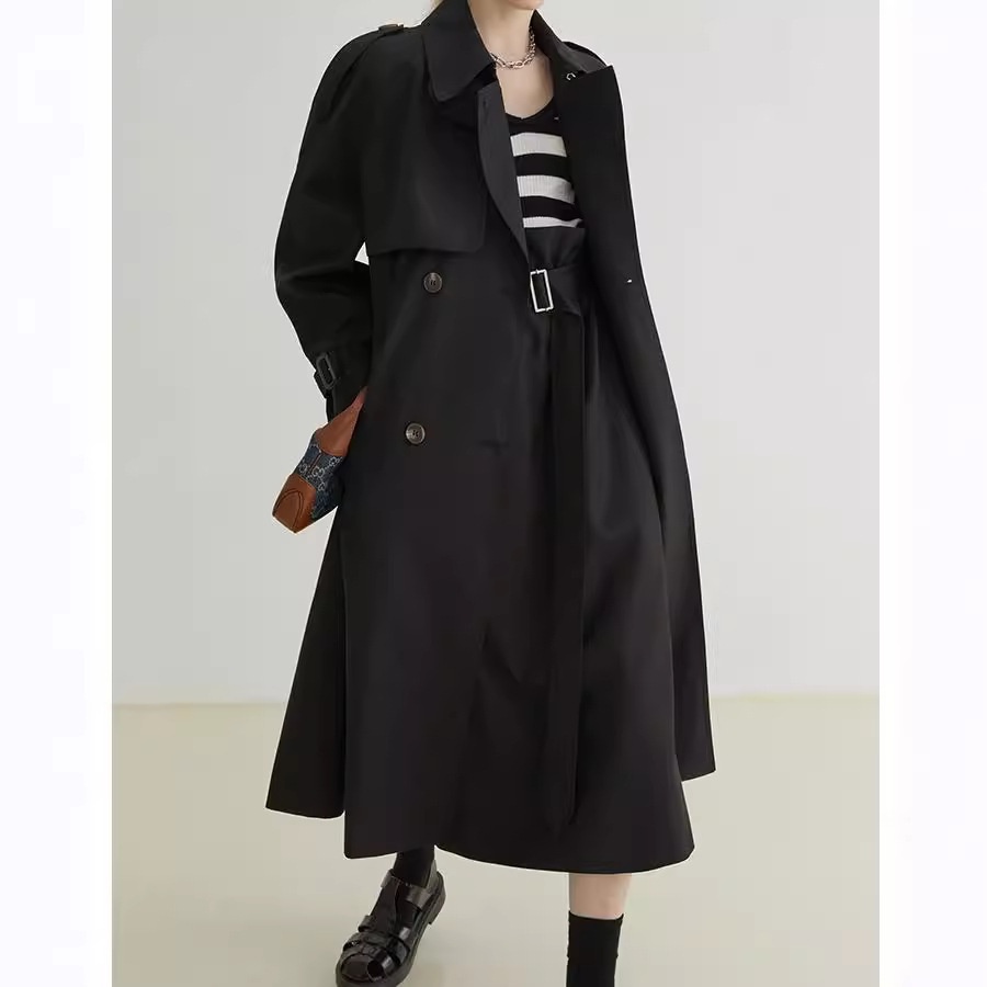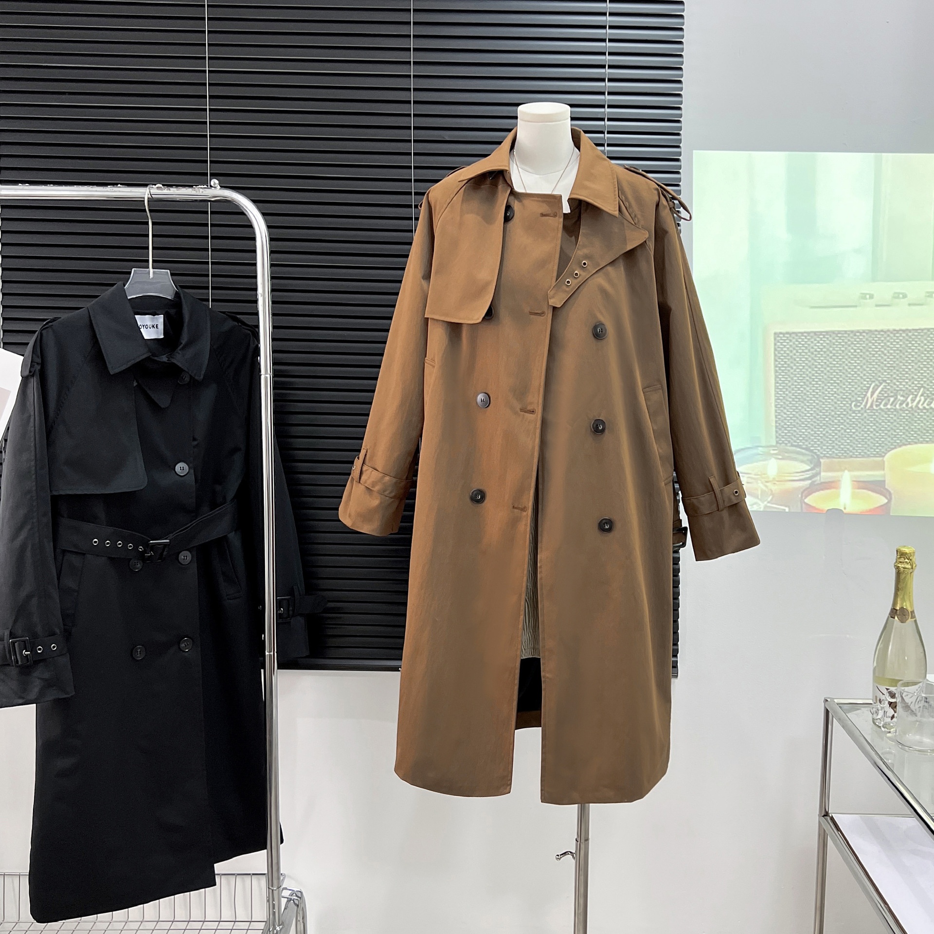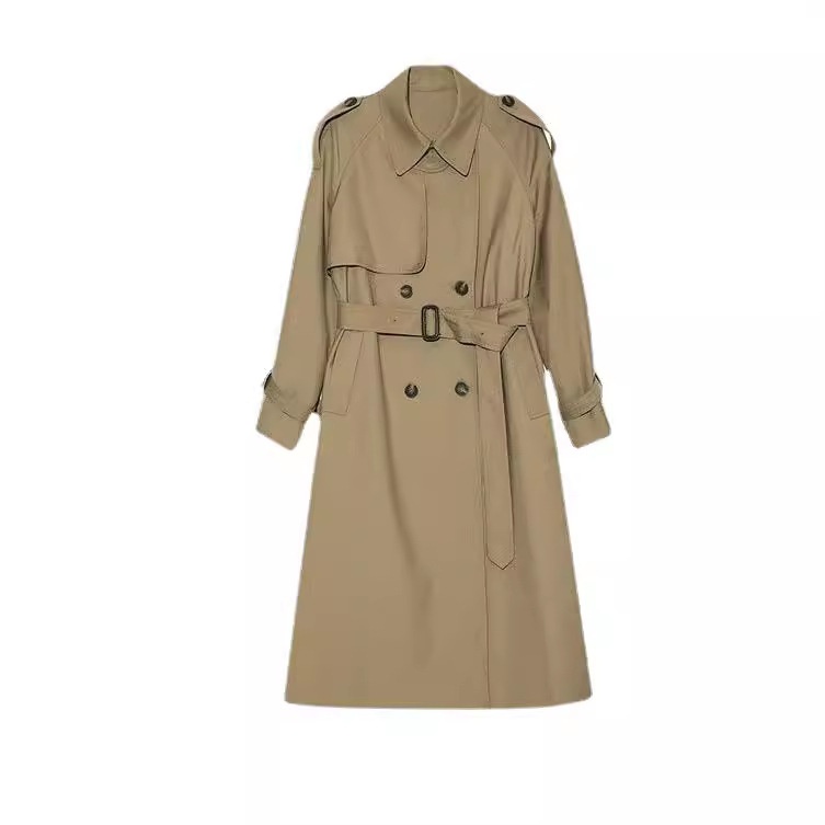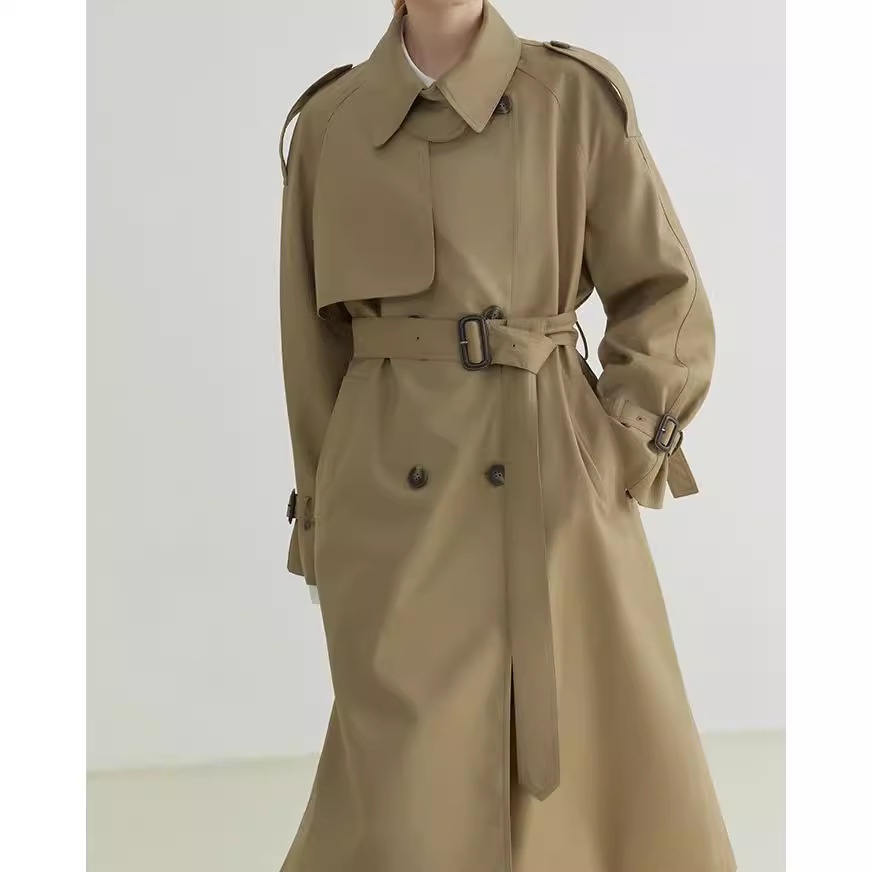 British-Style Double-Breasted Trench Coat:Loose-Fit Mid-Length Overcoat With Elegant Draping Effect