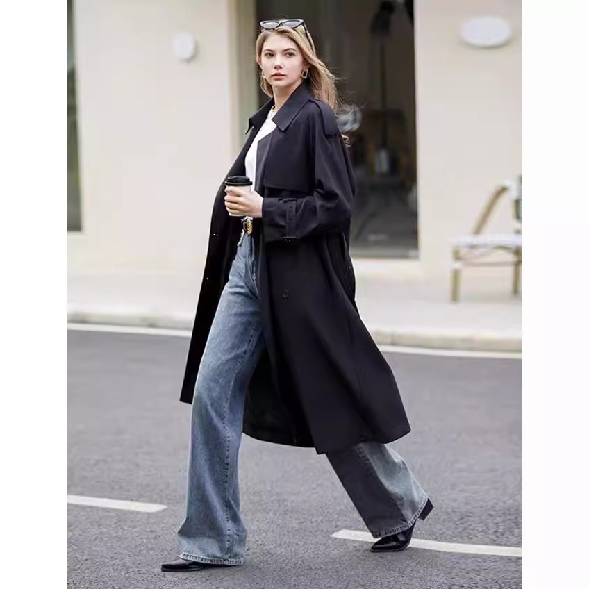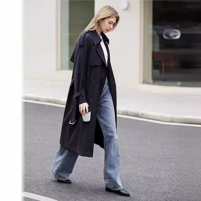 Mid-Length Trench Coat:Sophisticated British-Style Overcoat