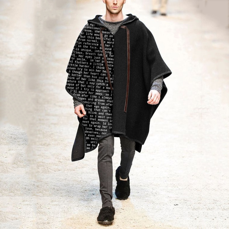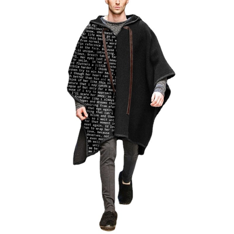 European And American Foreign Trade Printed Letter Men's Cloak Shawl Pullover Cloak Wool Jacket