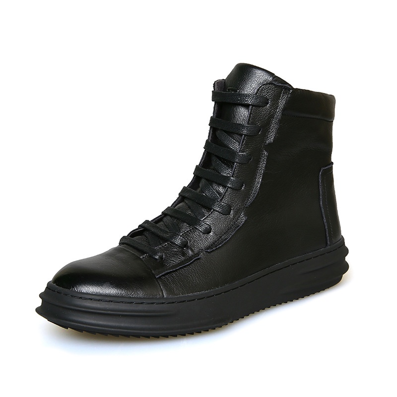 Winter Martin Boots Men's Genuine Leather Top Layer Cowhide Men's Short Boots British Style Plus Velvet Workweary Mid-high Top Men's Shoes