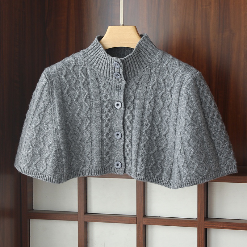 Soft And Waxy Wool Short Layered Outerwear Cardigan Knitted Shawl Half High Collar Neck Protection Cashmere Cape Waistcoat