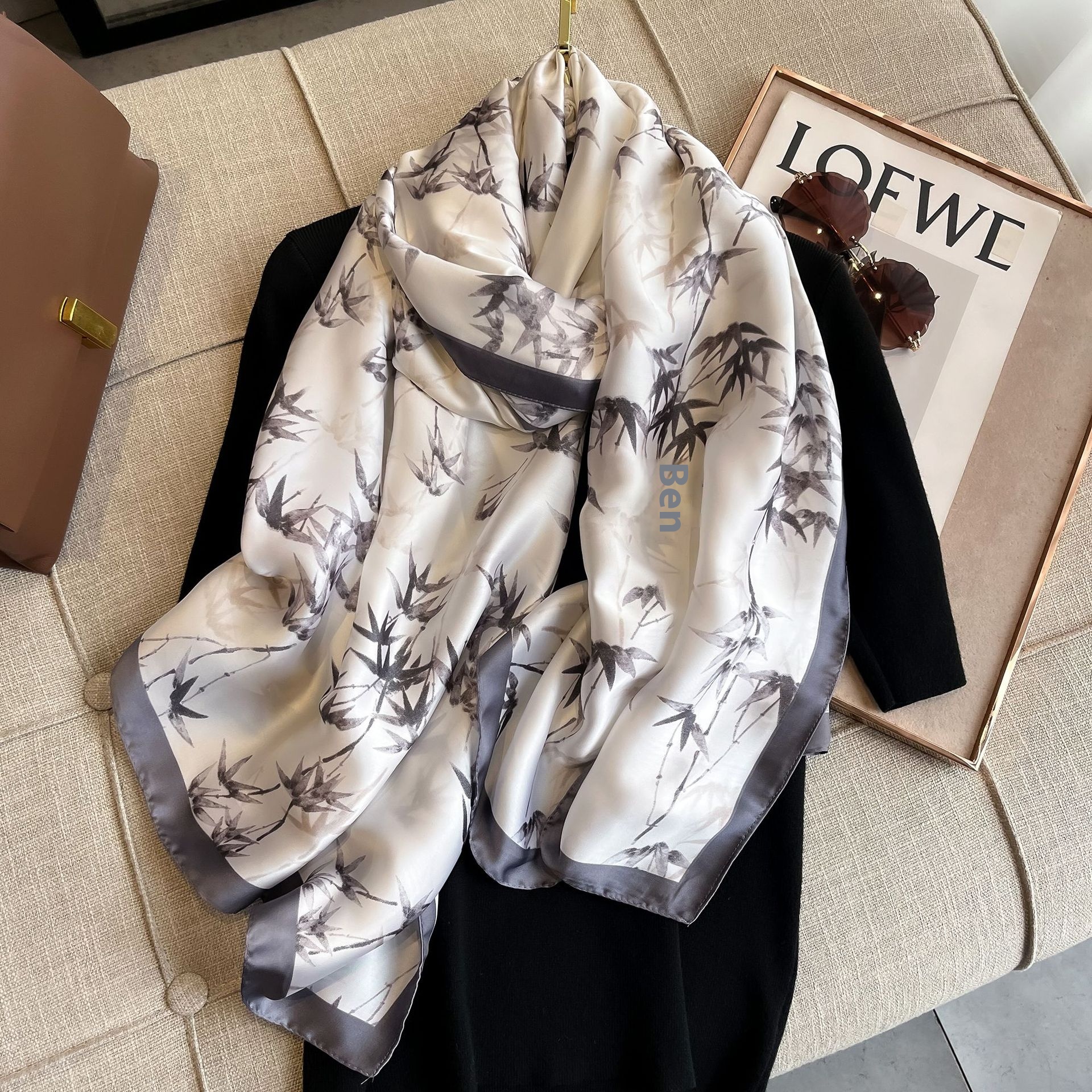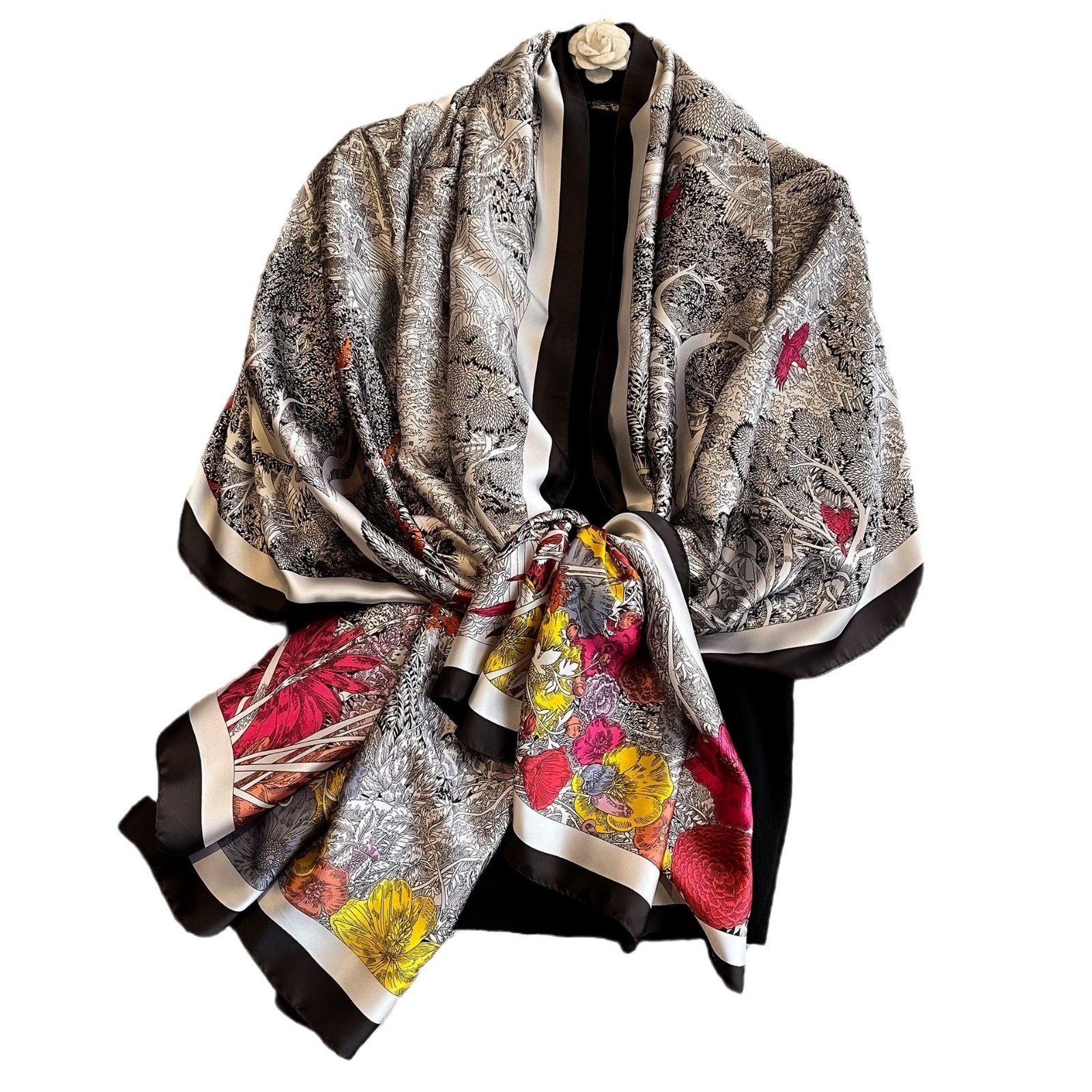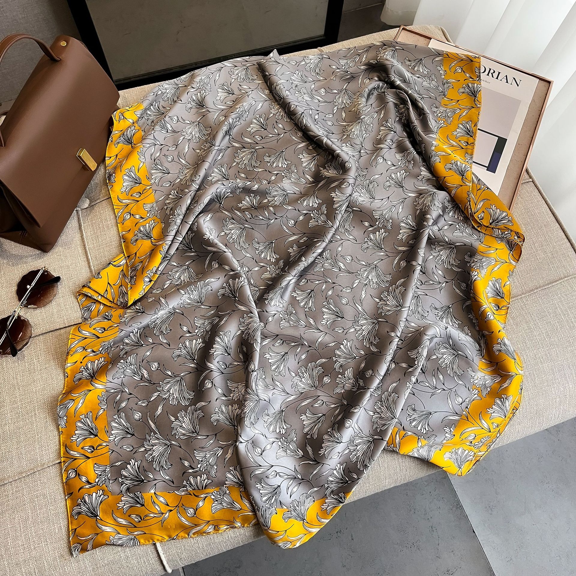 Forged Silk Scarf Korean Style Simple Versatile Beach Towel Outer Travel Shawl Printed Imitation Silk Scarf