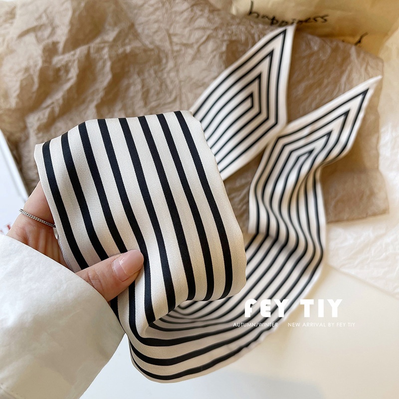 Nordic Striped Minimalist Style Silk Scarf Long Strip Streamer Western Style Decorative Scarf Long Thin Scarf