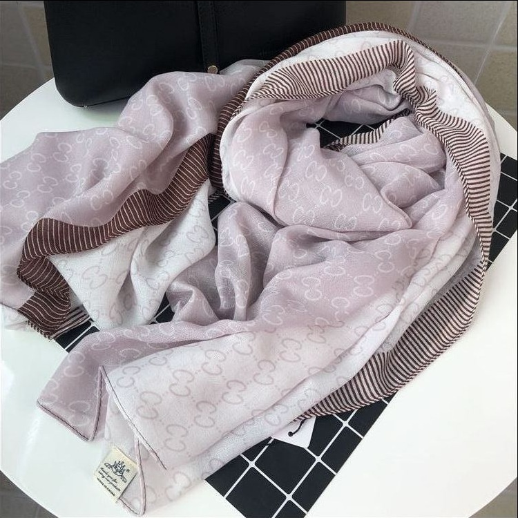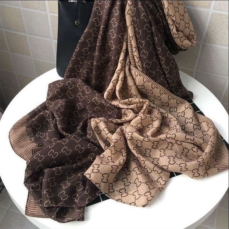 Linen Feel Warm Silk Scarf Letter Stylish Rectangular Color Matching Gauze Scarf