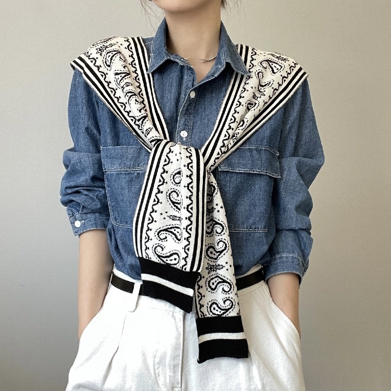 Shawl Outer Waistcoat Korean Spring And Autumn Knitted Decorative Shirt Shoulder Cashew Flower Fake Collar