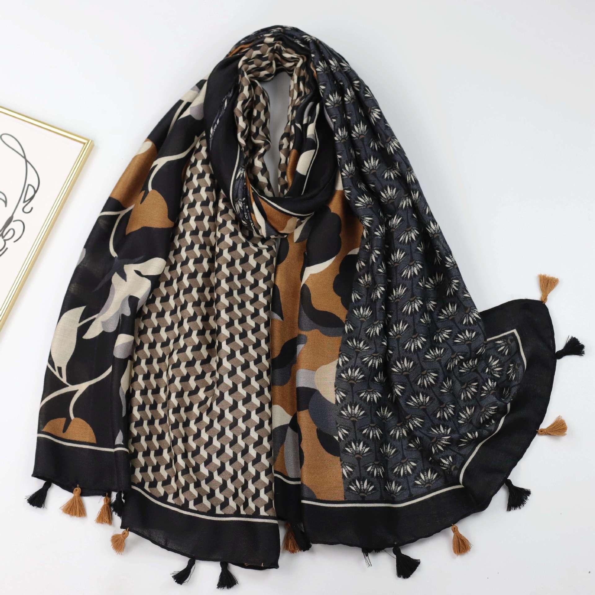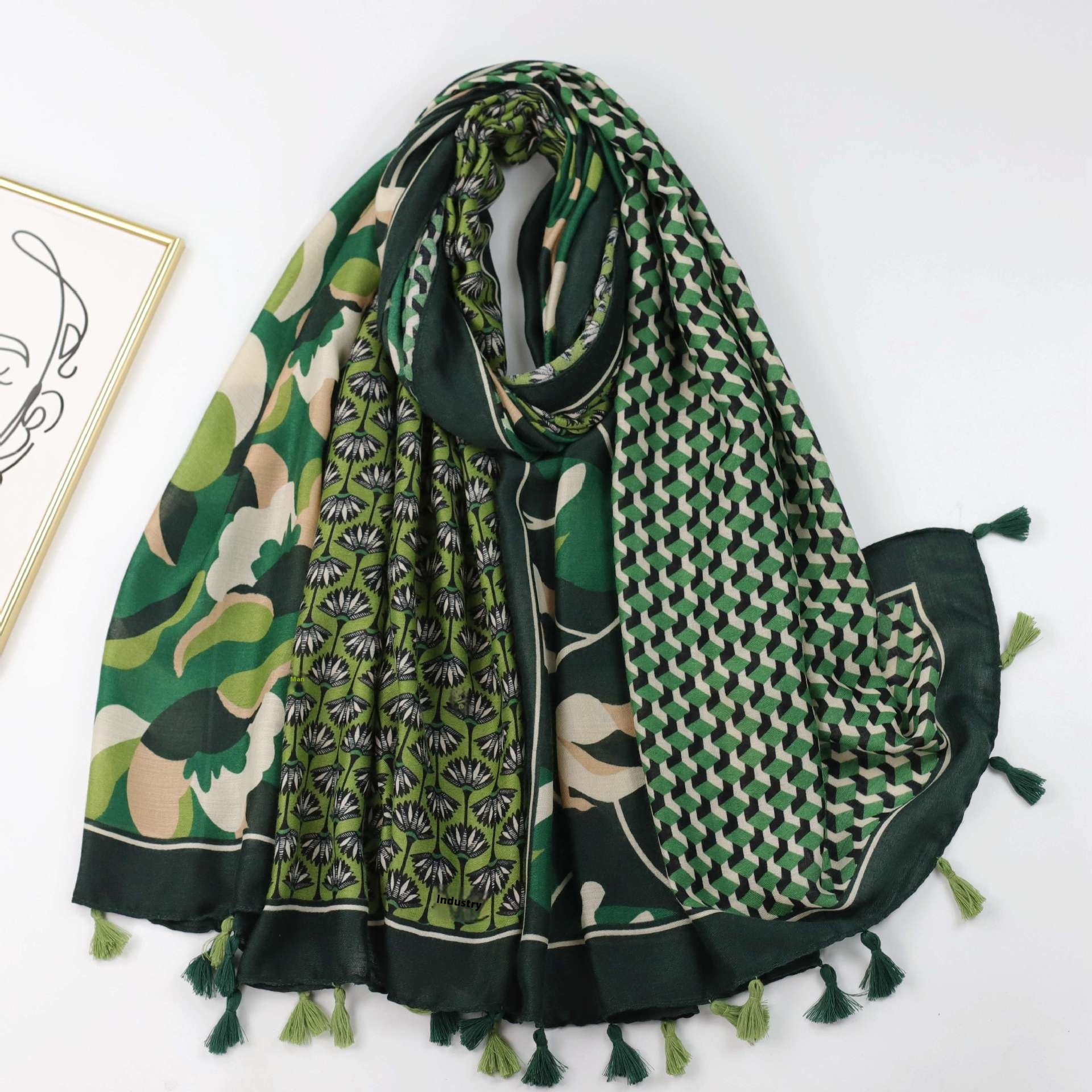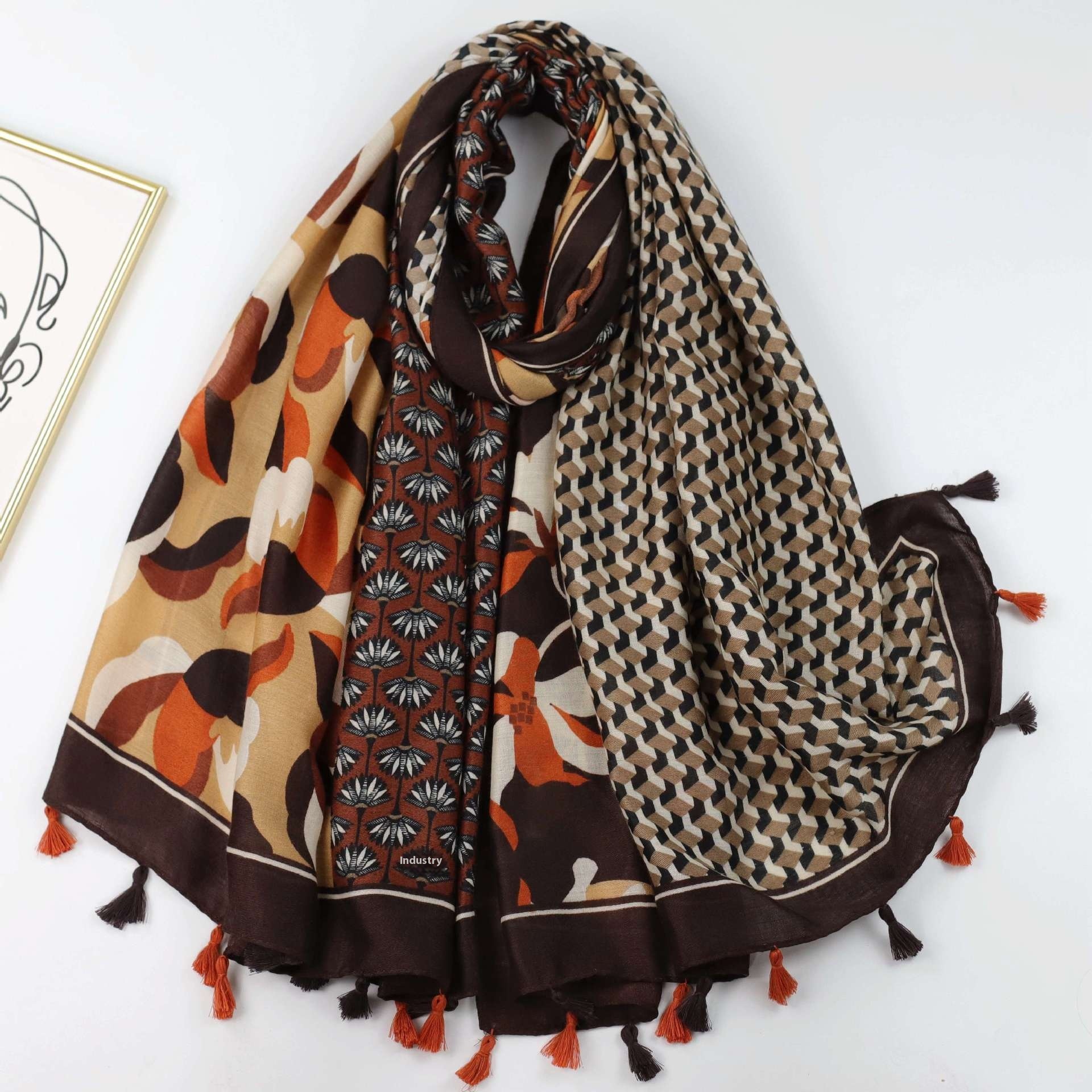 Satin Printed Long Scarf For Travel And Vacation Sun Protection And Warm Shawl