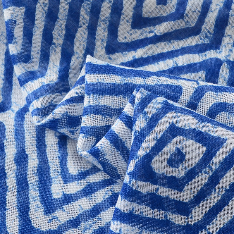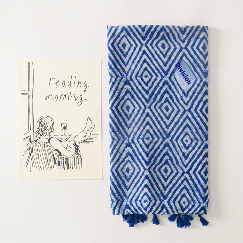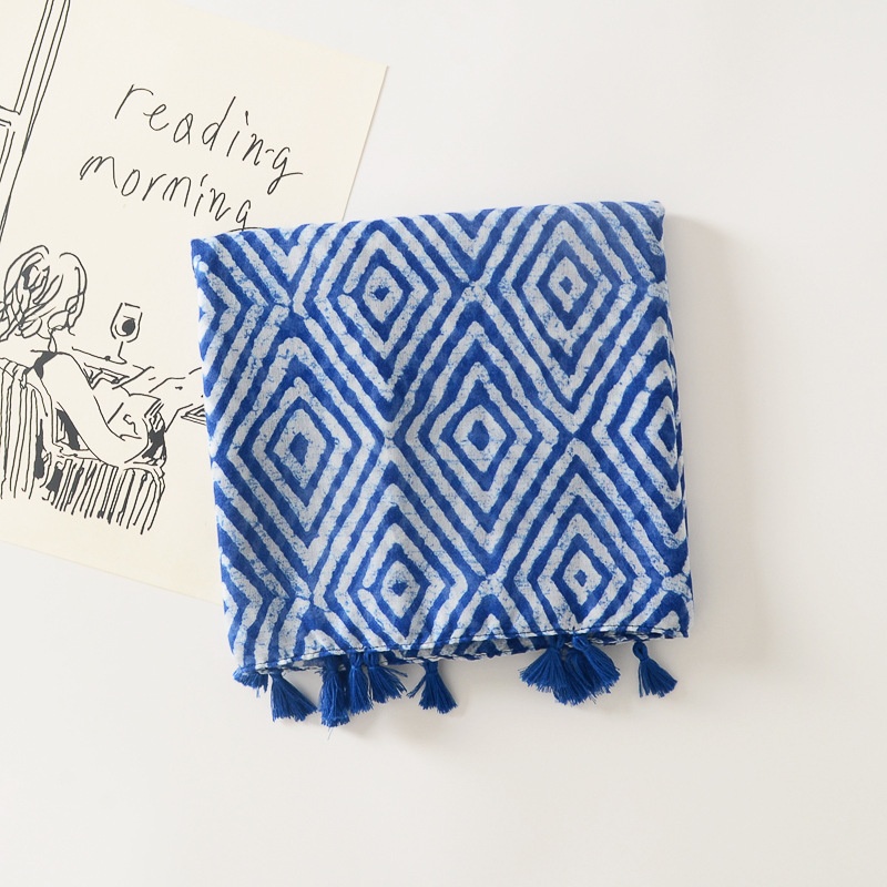 Geometric Diamond Long Tassel Large Scarf Travel Outer Wear Sunscreen Shawl Cotton And Linen Feel Scarf
