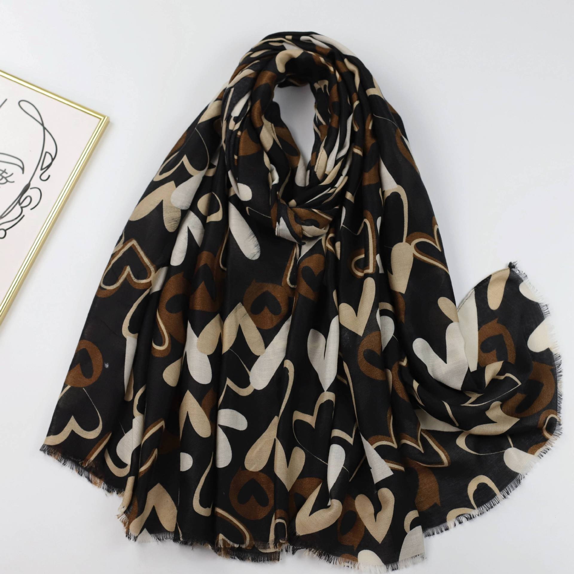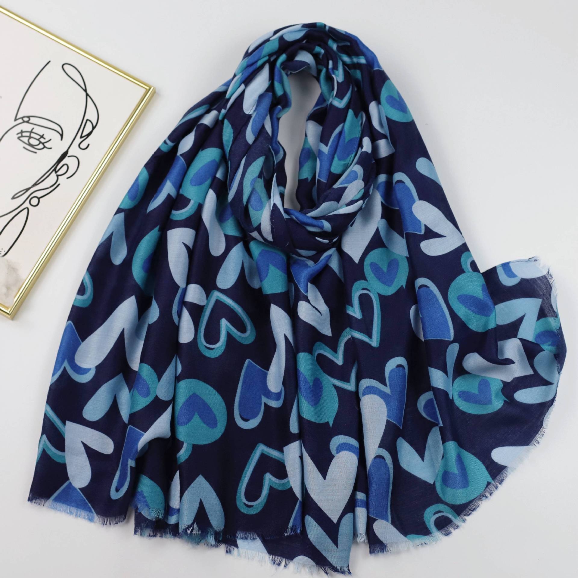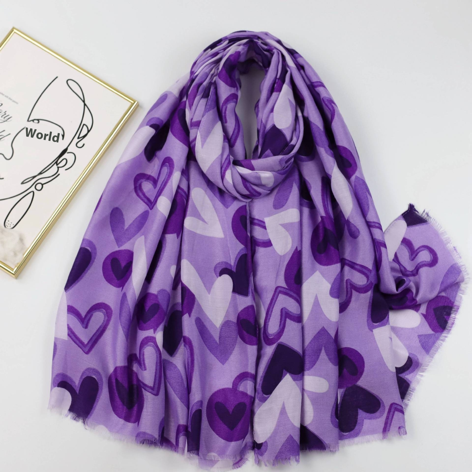 Elegant Love Satin Print Long Scarf For Travel And Vacation Sun Protection And Warmth Shawl