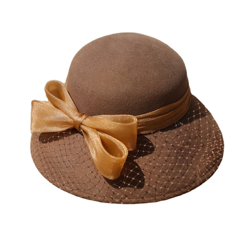 Elegant Light Luxury Wool Hat Banquet Hat Basin Hat Gauze Mesh Hat